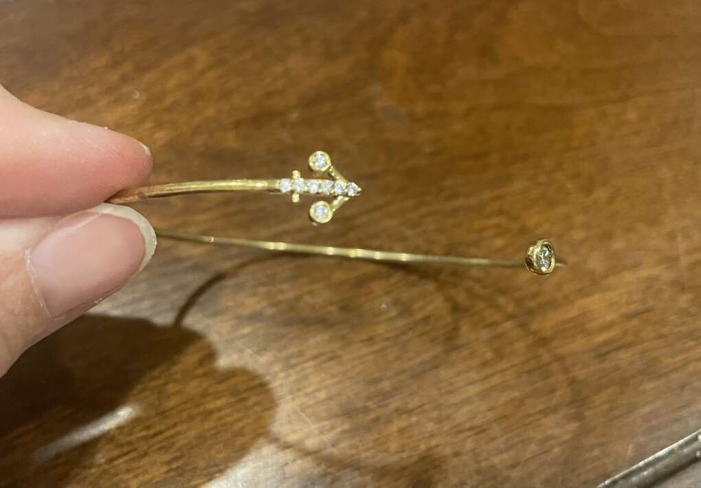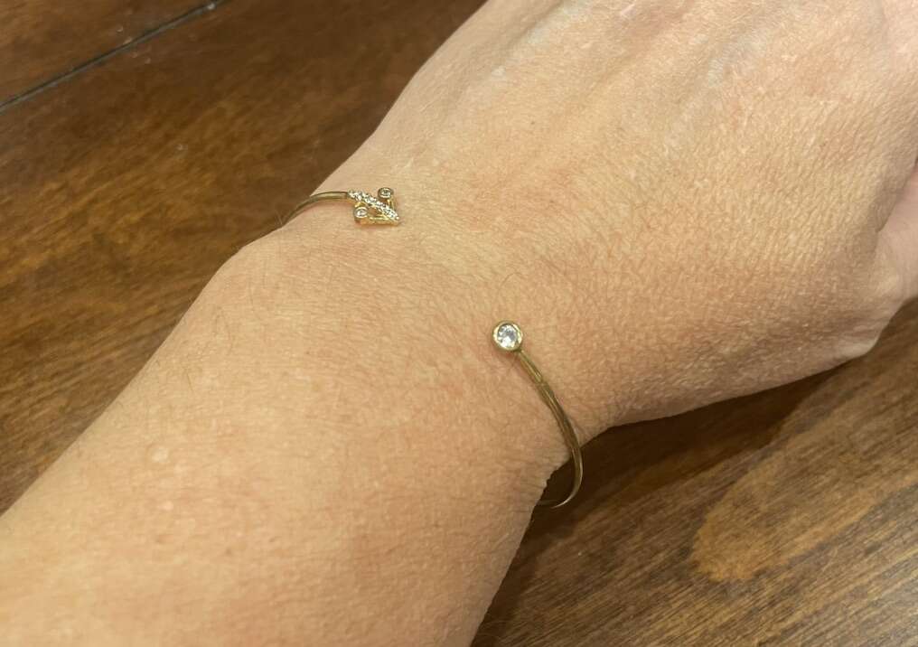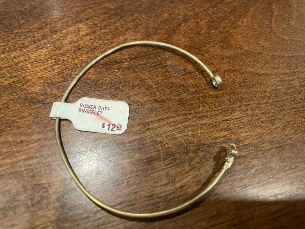 I have 2 new cuff bracelets with different ends. There is 1 with an anchor with rhinestones. It is gold tone. There is 1 with an Eiffel Tower in a crescent moon. It is silver tone. One still has the price tag showing it was $12. I’m asking just $3 each. See my other ads for jewelry, artwork, home decor and more.
