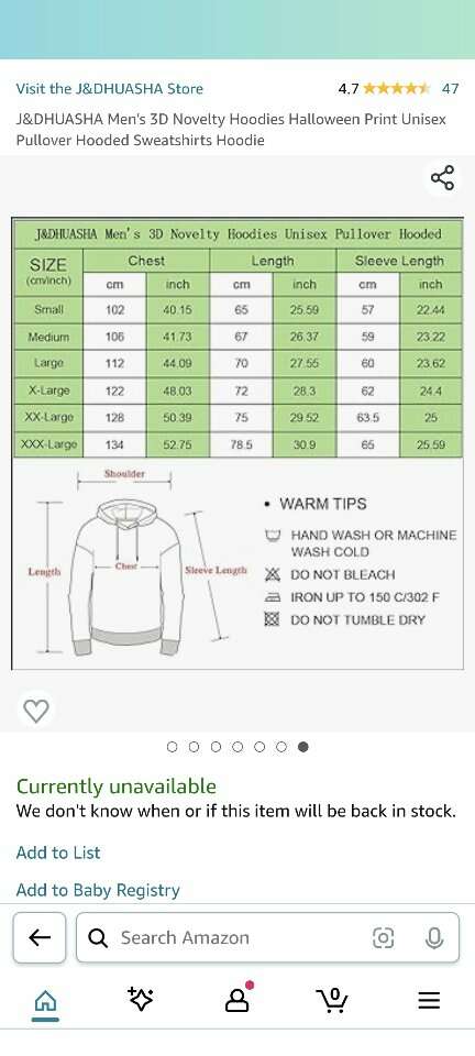 I included a screen shot of the size chart.
