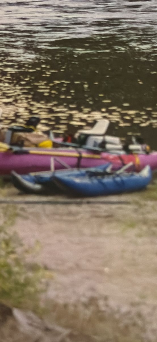 10’ air tubes with frame Fun little white water cataraft tubes Good condition lots of life has been stored in shed style is a cheetah 800 or best offer Have taken on several rivers fun to use on lakes as well You can also get a bigger frame so it’s like a mini cat That you can store bags on, sold the one like that lots of fun