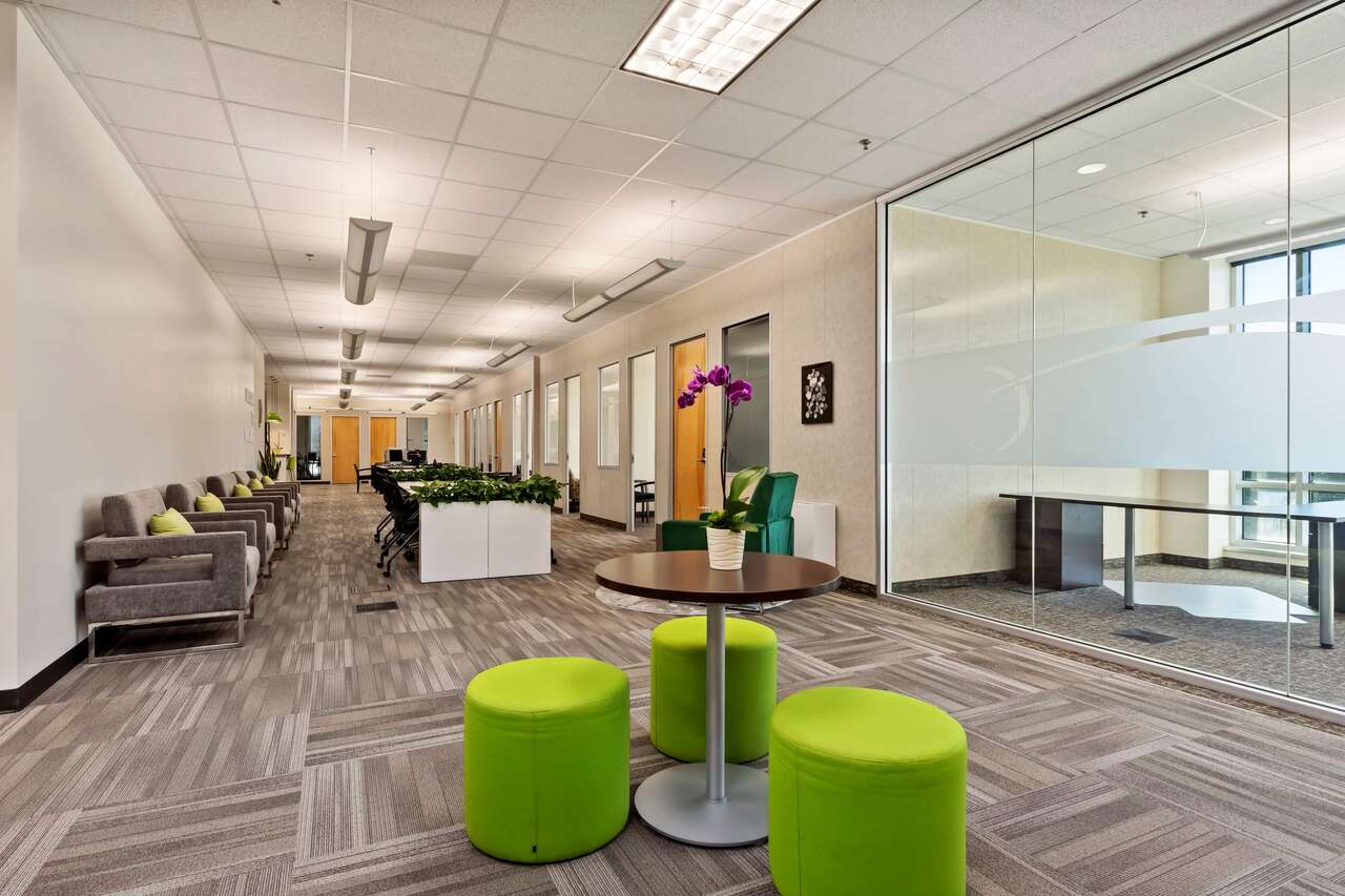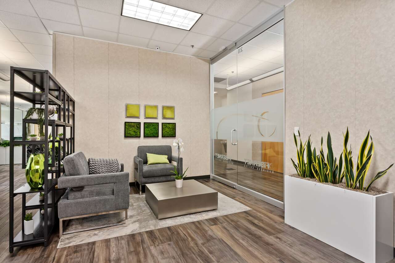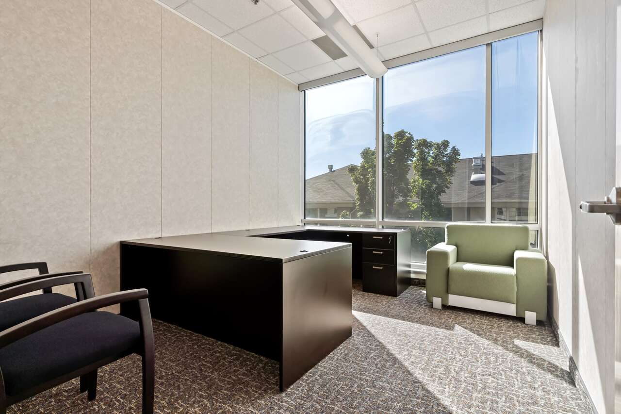 Office Suite #251 is available now! It has large floor to ceiling windows, and professionally furnished with a desk, armchair and receiving chairs. In our newest 2nd floor suites expansion, enjoy a secure and private workspace while still having access to the first floor conference rooms and amenities.