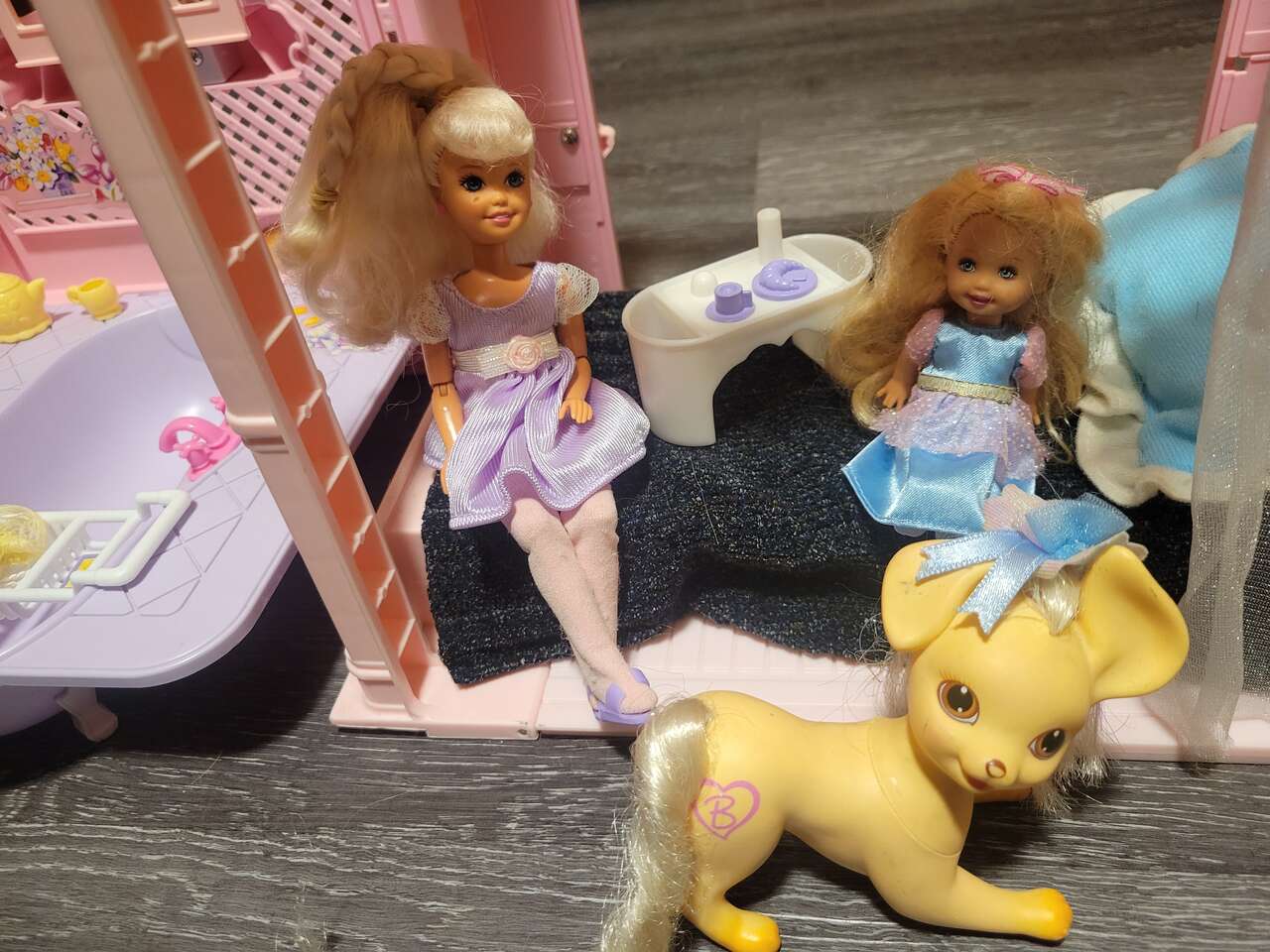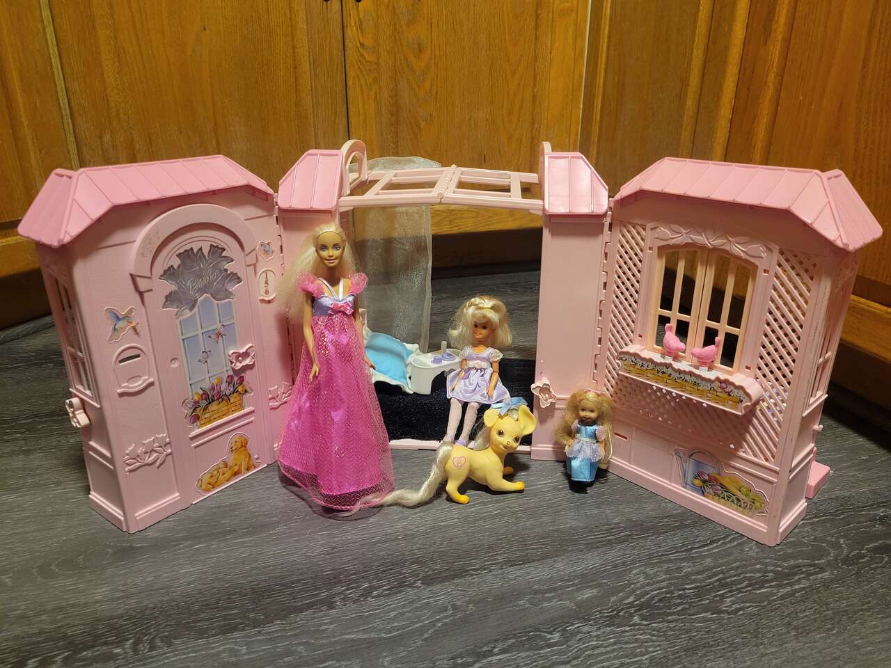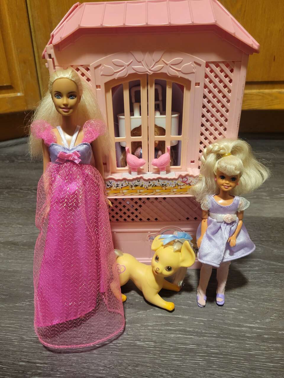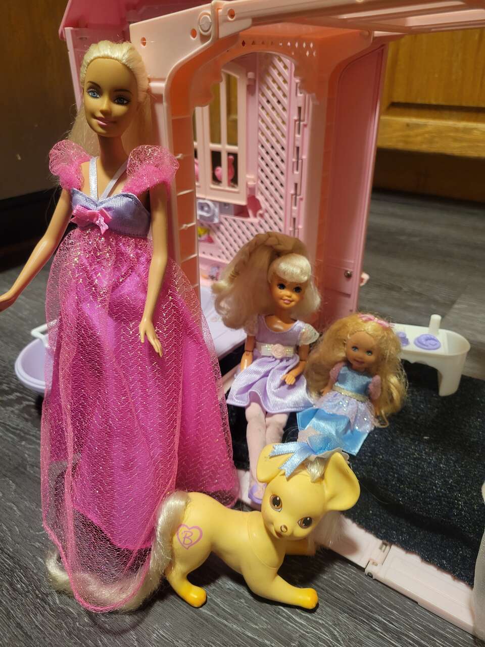 Barbie, kelly and Stacy, with there beloved pet dog
