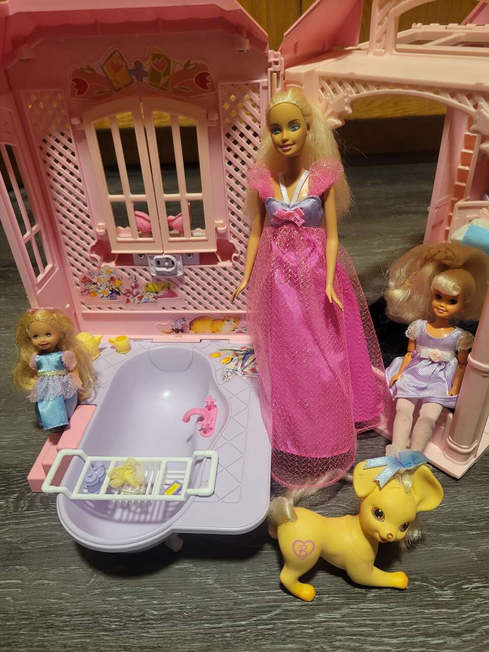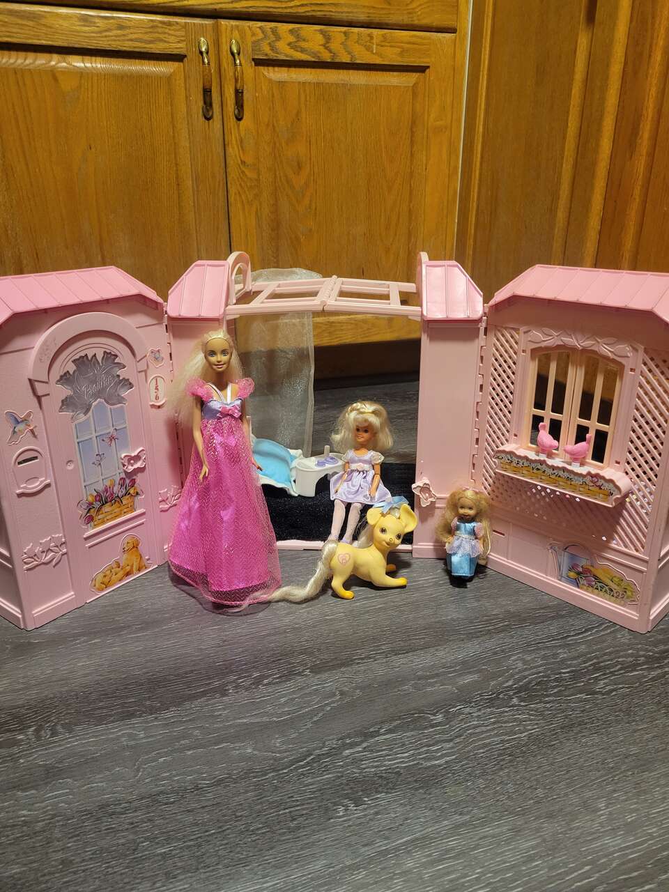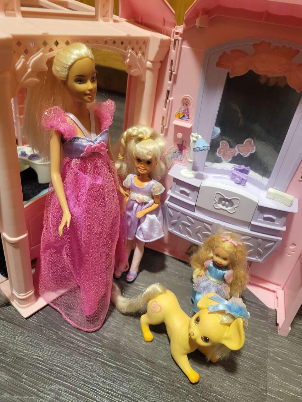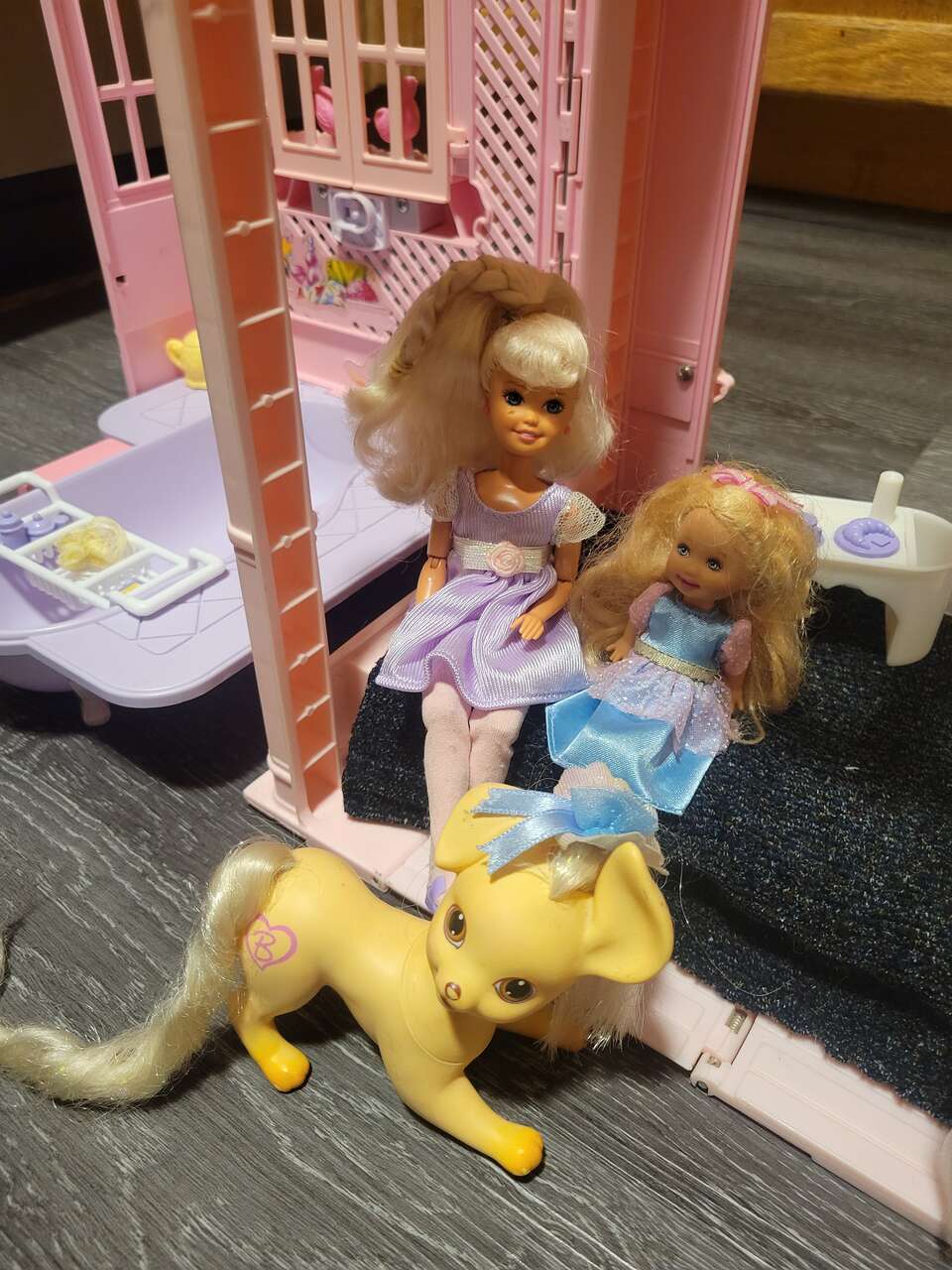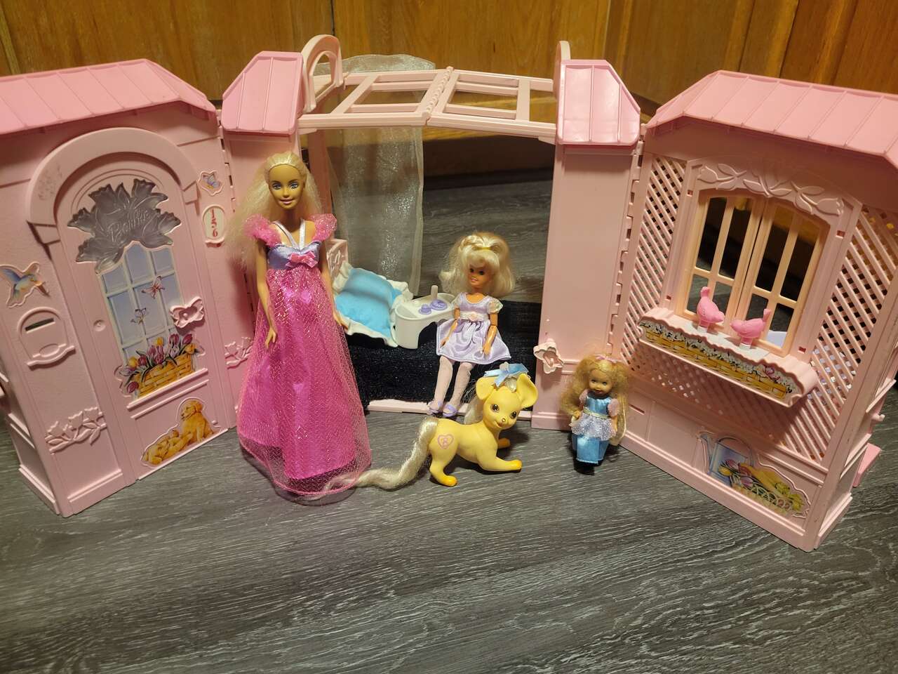 Barbie, kelly and Stacy, with there beloved pet dog