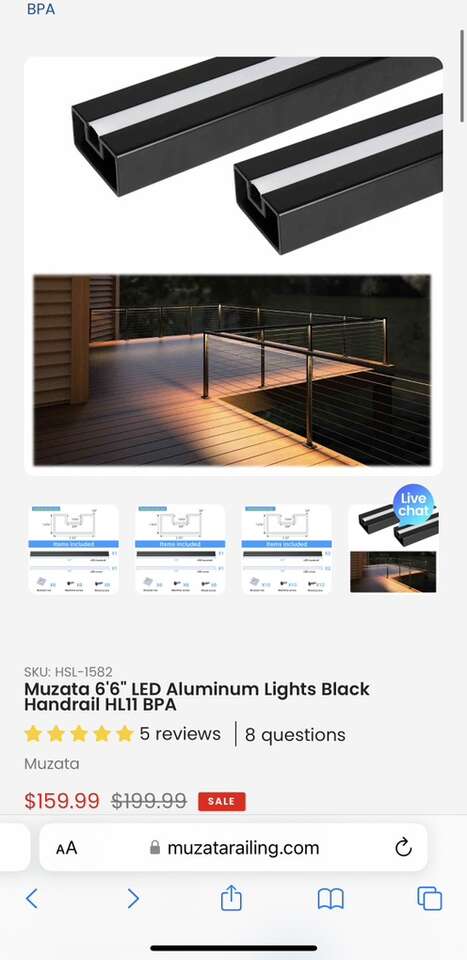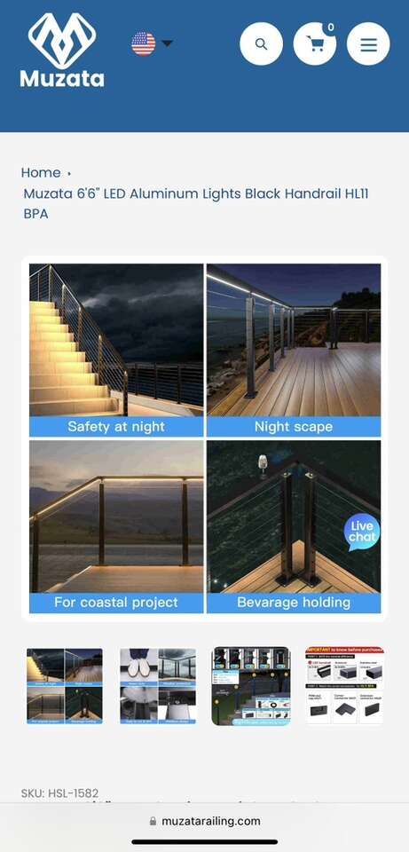 The Muzata HL11 BPA Lights Black Handrail 6’6”
