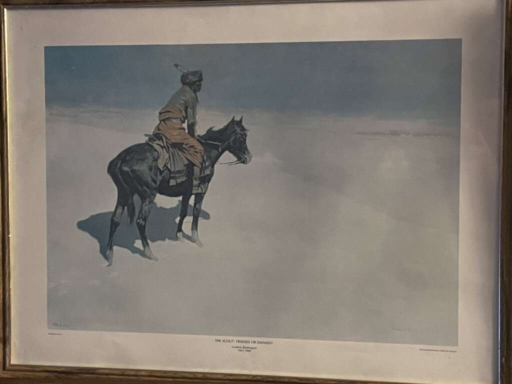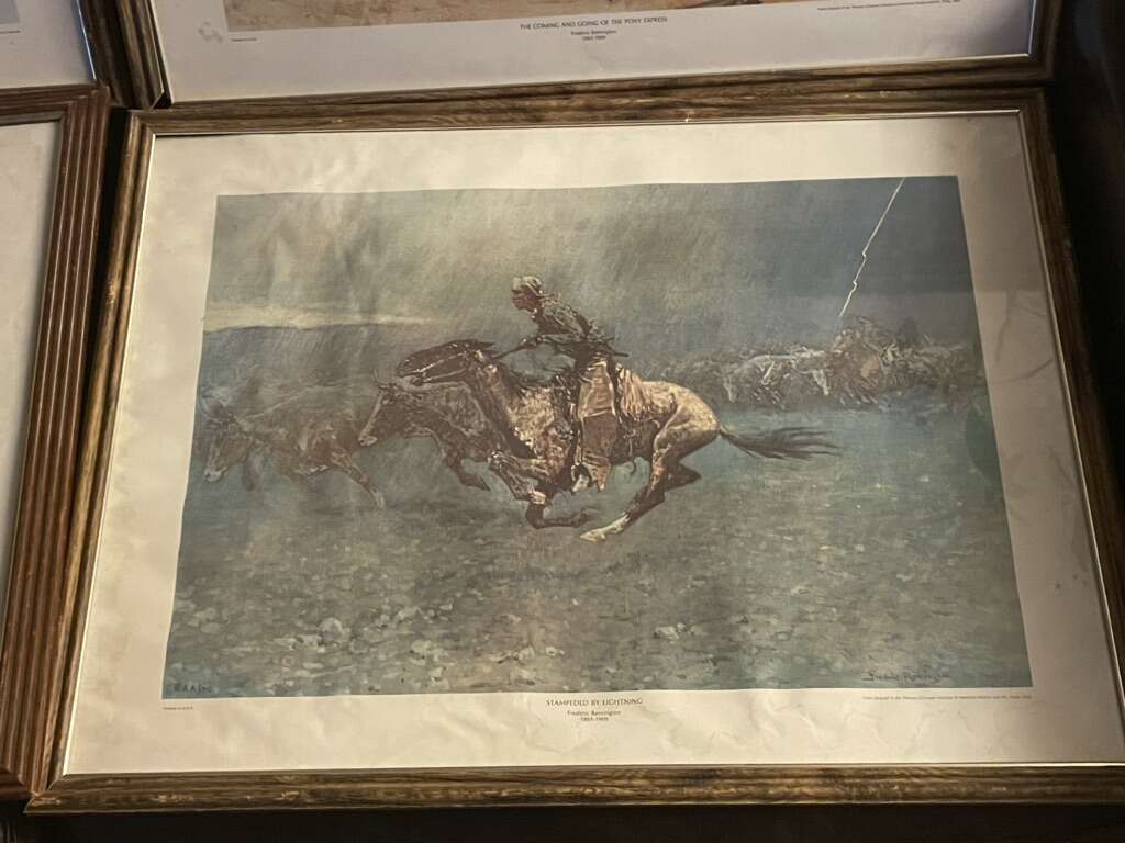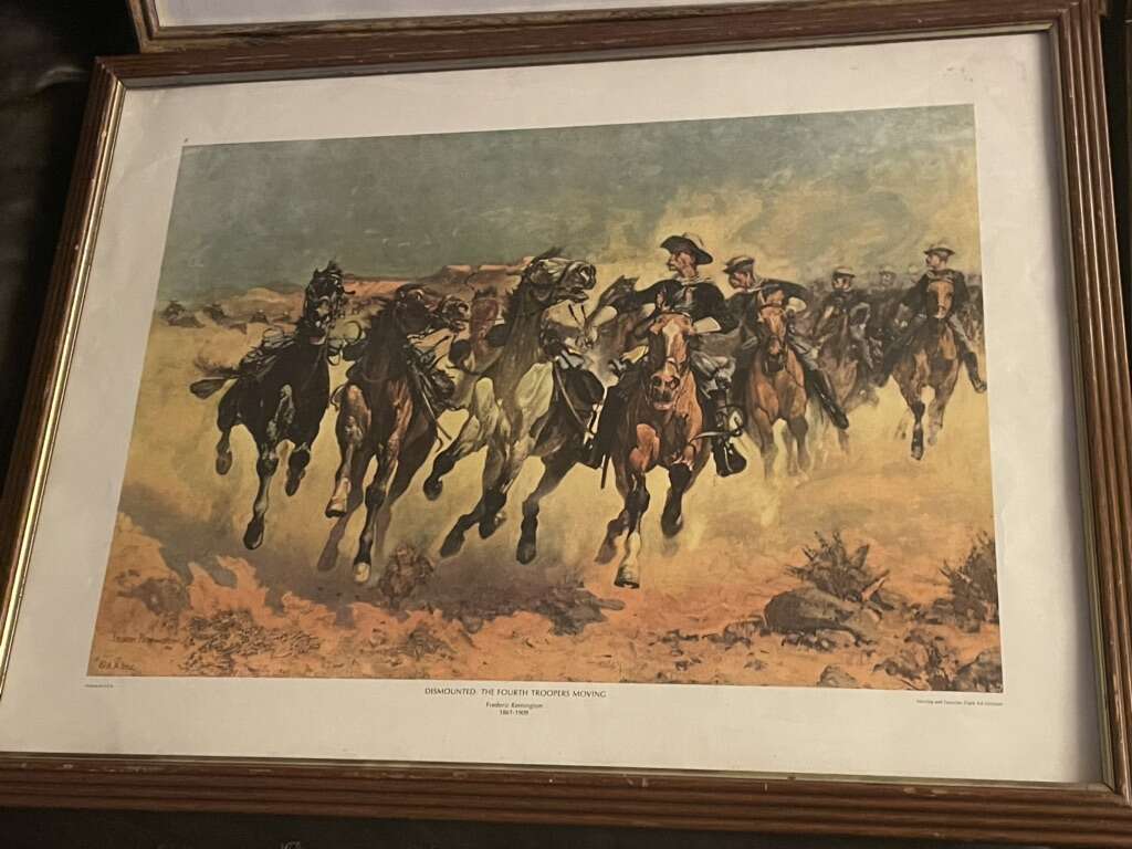 4 Amazing prints from frederic Remington collection. 3 are in beautiful like new condition. Stampede by lightning has some water damage but is in still good displaying condition. (Frame on one has come separated in corner but doesn’t affect print integrity. Prefer to sell as a set.