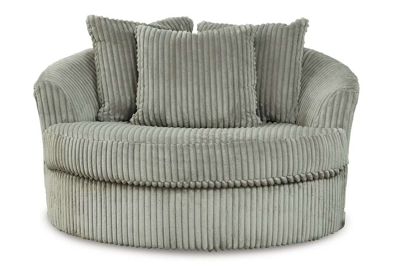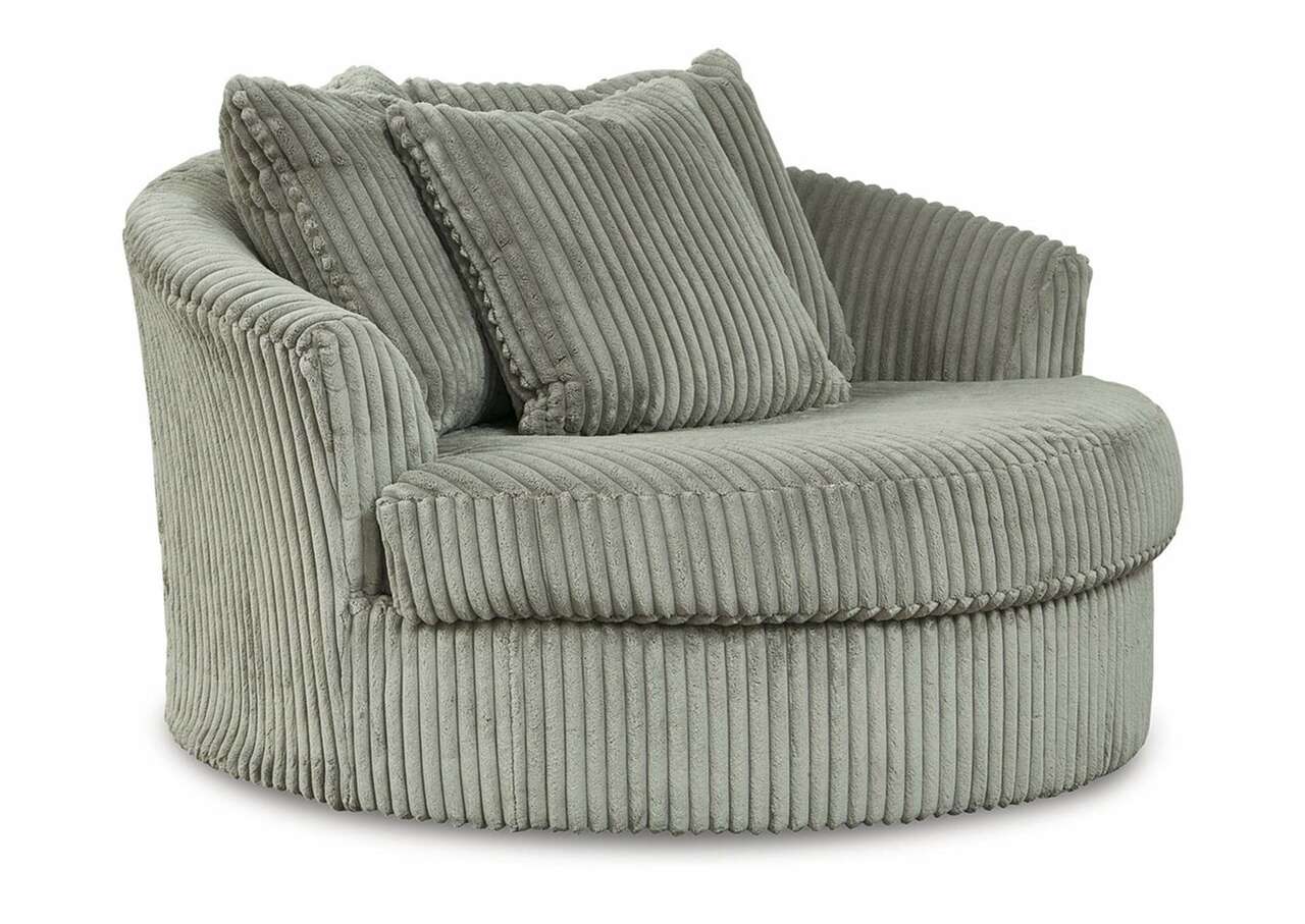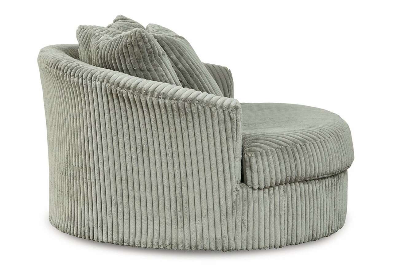 Plush and posh. Showcase your eye for on-trend texture with the statement-making cord upholstery of this oversized swivel accent chair. Its stunningly soft fabric entices in a warm neutral hue, complementing contemporary color palettes. Sink into the spacious cushion and plan to stay a while—this cozy living room chair highlights your high-end approach to comfort and style.Corner-blocked frame