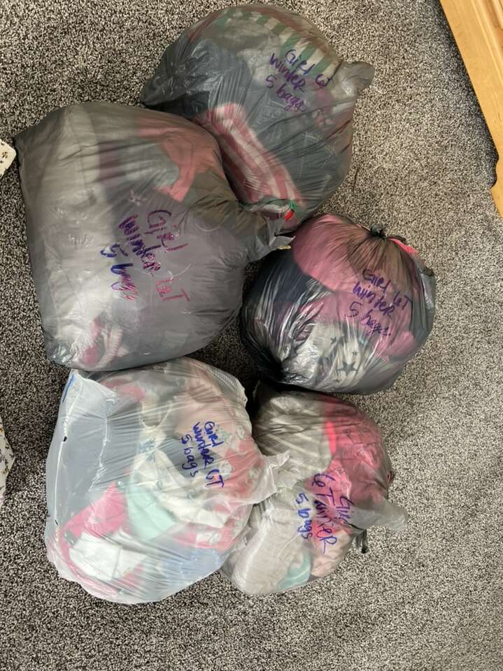 5 stuffed full bags. $100,s spent on these clothes, a great deal.