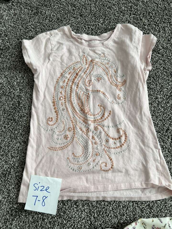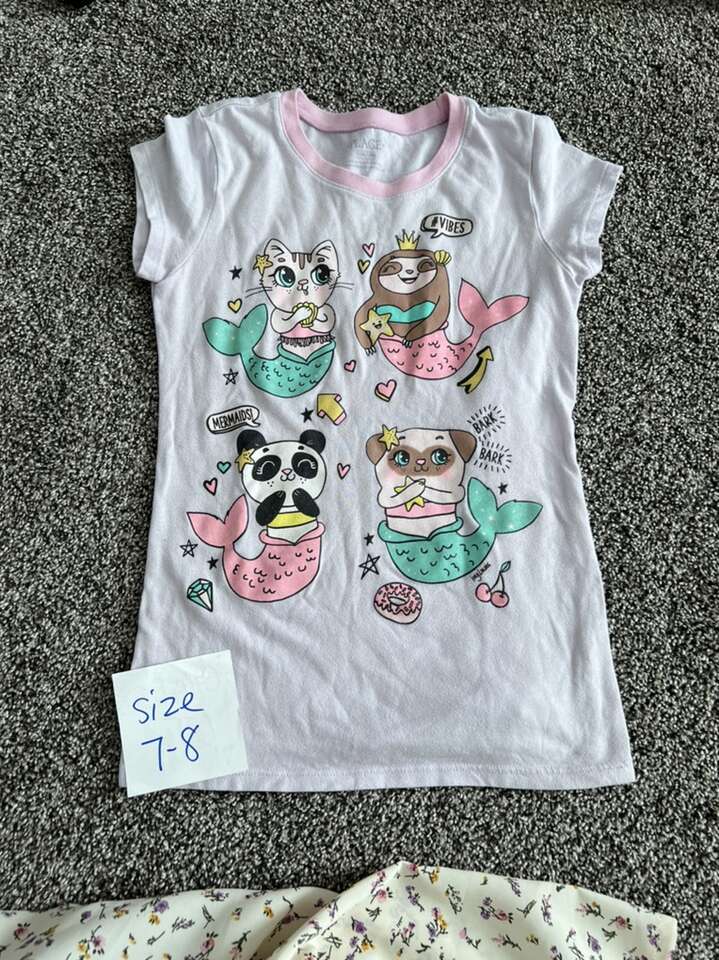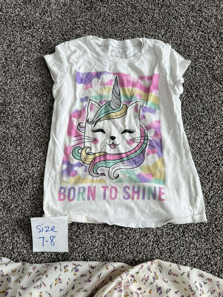59 cute summer items for your child size 6. There are a few size 7-8 shirts, they are labeled in the pics. All items pictured. Great deal, paying less than 1.50 an item. Even at used clothes stores you’re paying $3-7 an item.