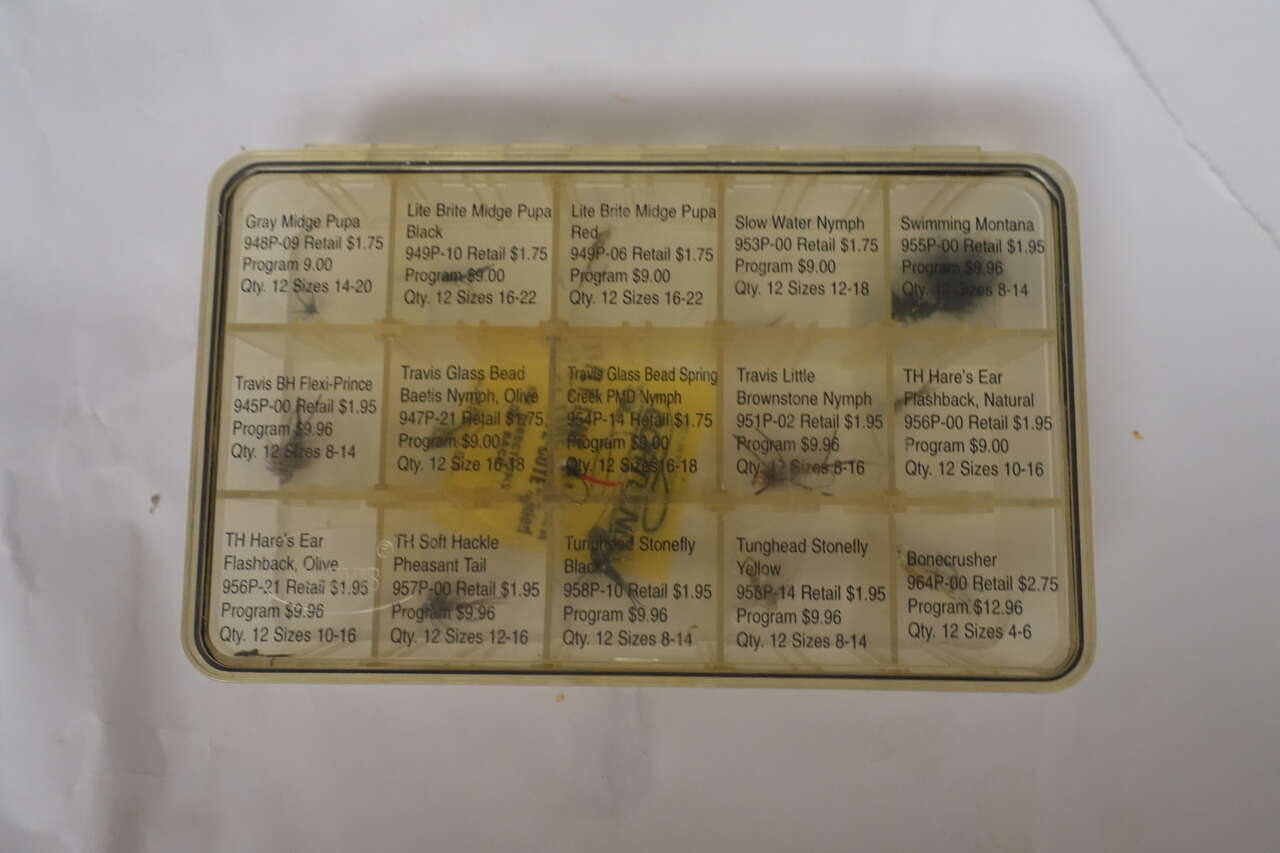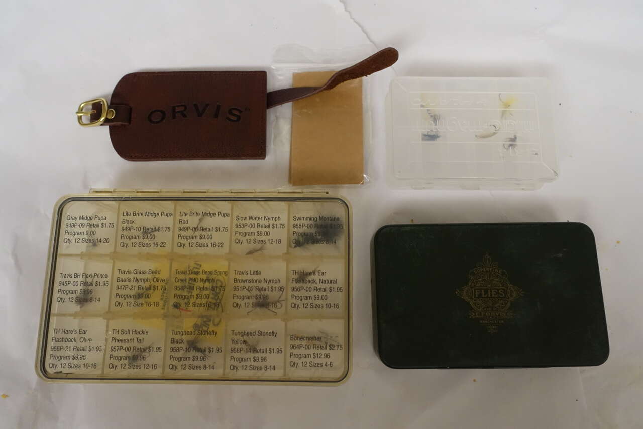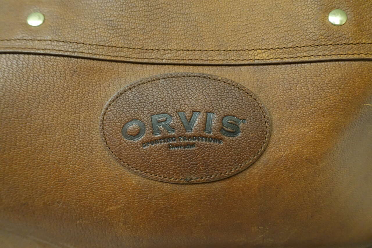orvis leather satchel carrying bag/with fishing flys/accessories/$375.00