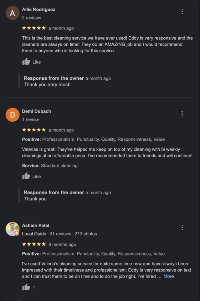 Valeria's Cleaning Services. Please See our Reviews on Google!