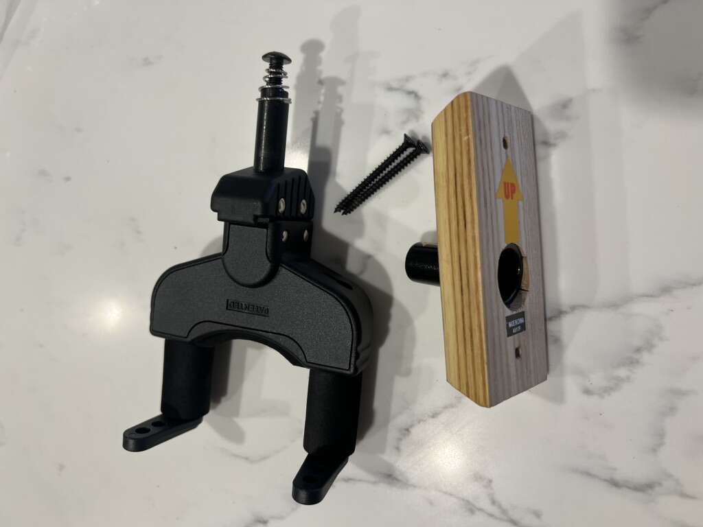 If any questions please ask Comes with all hardware needed New they are 27.95 from guitar center But Amazon 18.77 Has auto lock system Weight of guitar closes the bars you lift up and it releases the bars Swivel style mount as well to hang anywhere wall wise