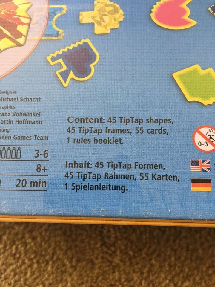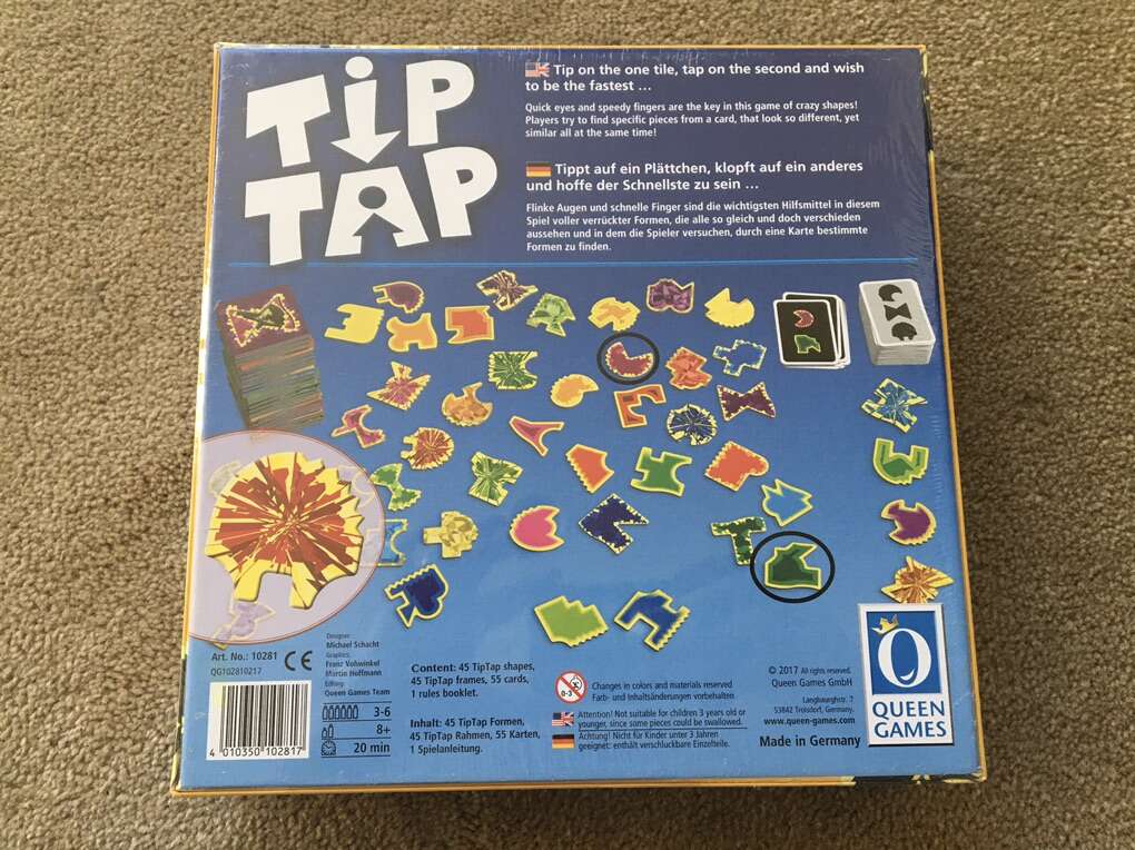 NEW (sealed in plastic) Tip Tap Board Game. 3-6 players, ages 8+. By Queen Games & Michael Schacht, 2017. High-quality game, made in Germany. New, unopened condition. Text only. Cash or Venmo. Discount on multiple items.