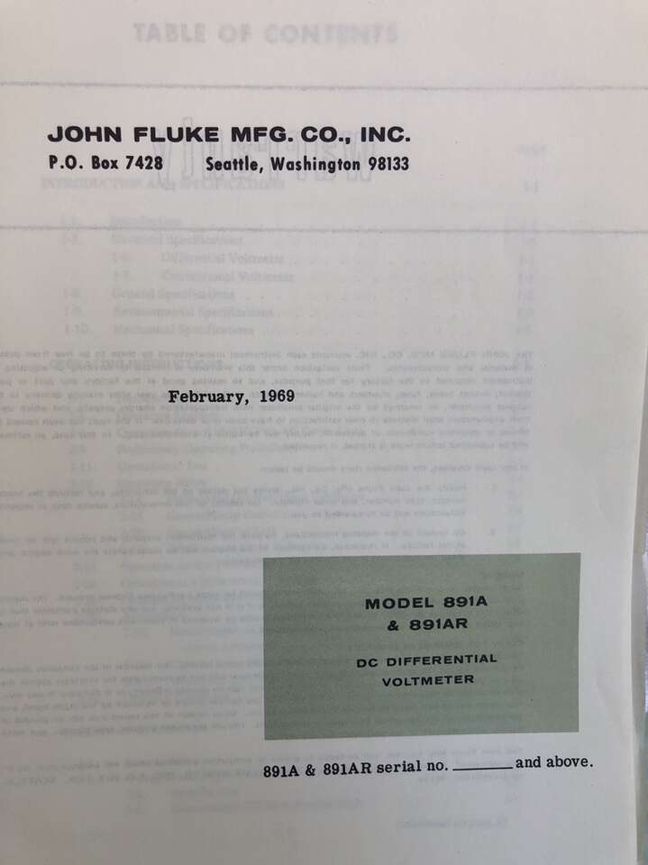 Fluke DC Differential Voltmeter models 891A and 891AR operations and service manual. Issued February 1969. Cash only. No codes or scammers.