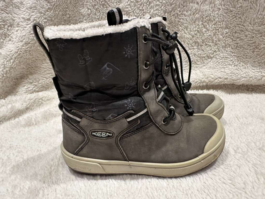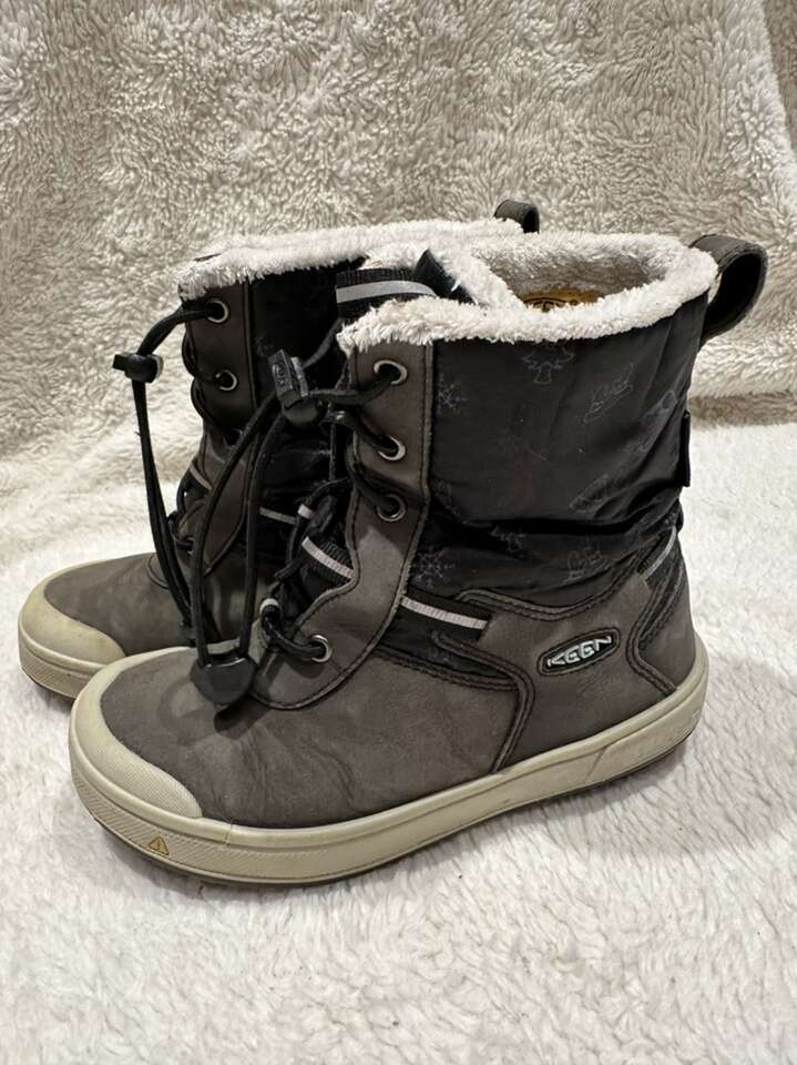 Keen toddler size 12 gray leather and textile with 200 g of insulation winter snow boots. These have the elastic laces with the toggle at the top. They have gray leather with synthetic uppers. They are in excellent condition. See photos for details. I take cash or Venmo. Text is best. 801-201-4446.