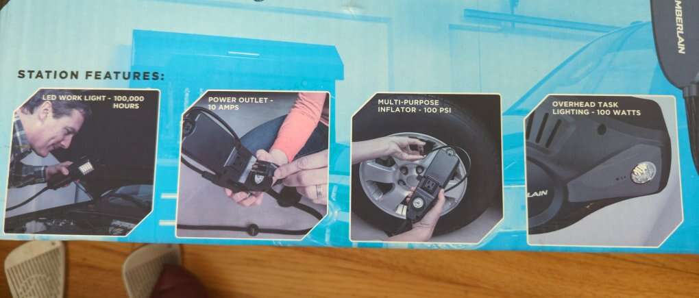 Never used, attach to ceiling and power and you can use it to check and inflate tires.