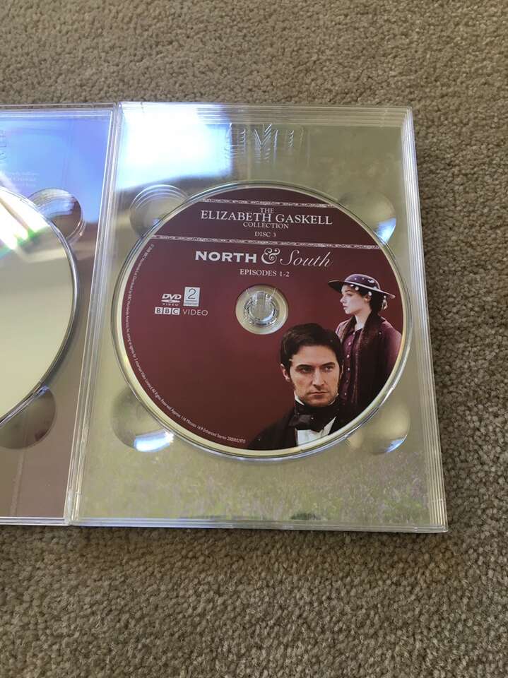 BBC The Elizabeth Gaskell Collection DVDs: Cranford, North & South, and Wives & Daughters. 7-disc set, three gorgeous BBC shows based on Gaskell’s beloved books. Discs in very good condition (a few slight scratches, all discs play). Text only. Cash or Venmo.