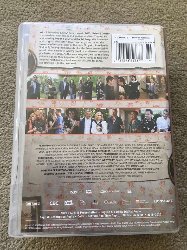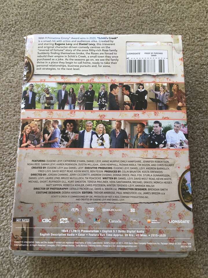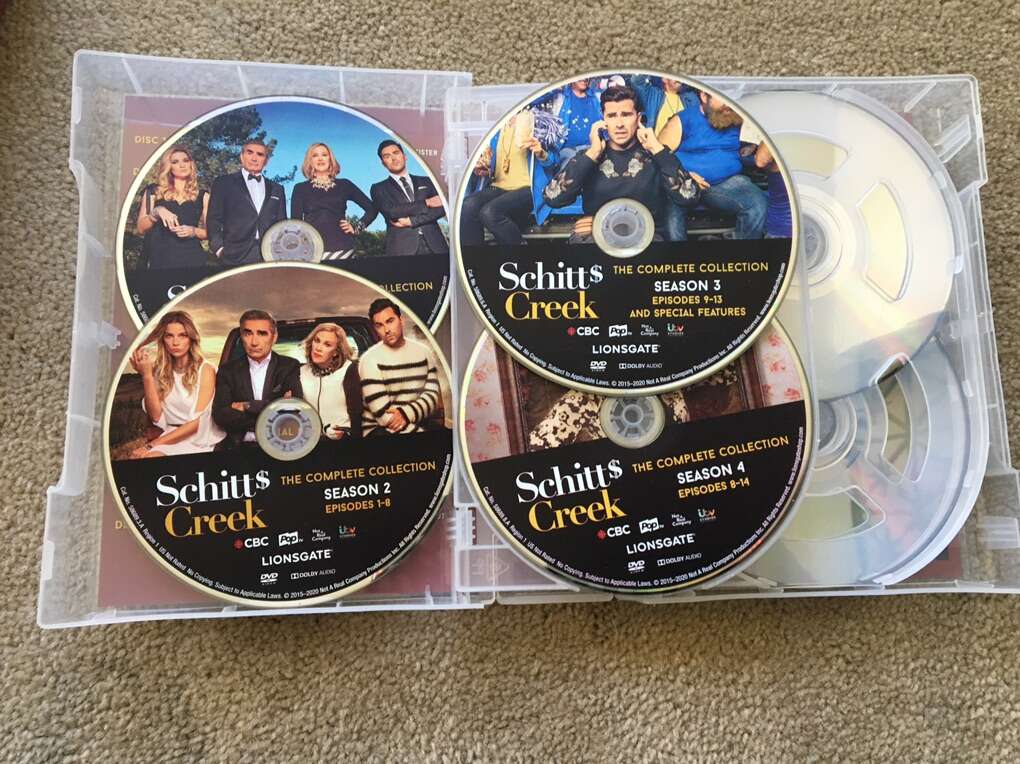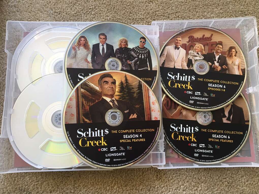 Schitt’s Creek: The Complete Collection DVDs. 14 discs, 29 hours. The complete, award-winning, beloved series. All discs in very good condition. Text only. Cash or Venmo.