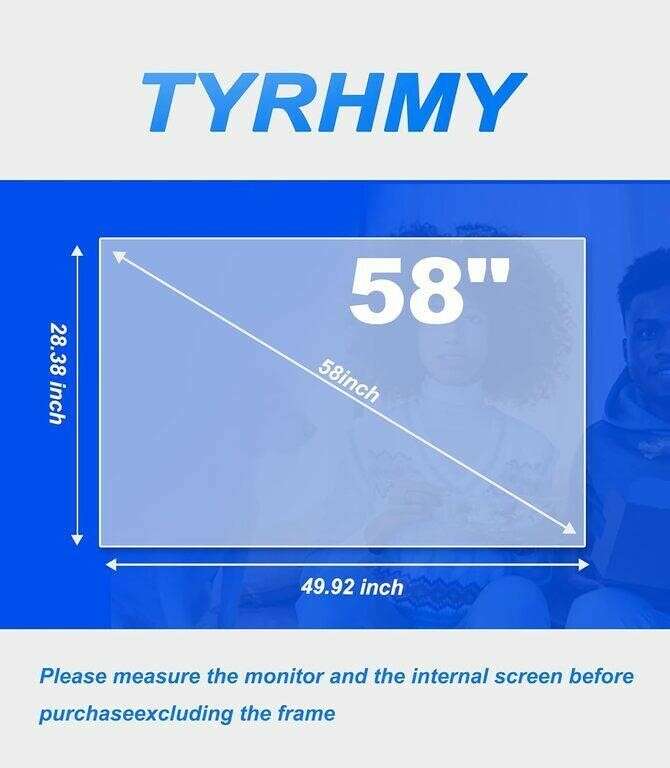 About this item - Actual Screen Protector dimensions are 58 inches, 49.92 inches wide x 28.38 inches height. Please compare your TV set with our size plan