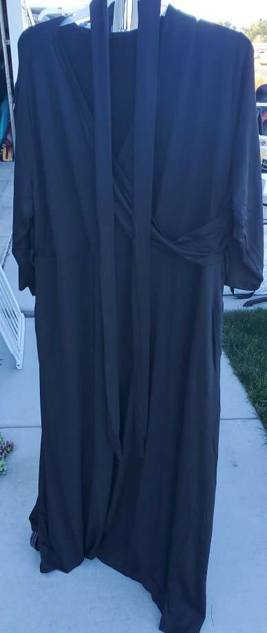 Black maxi dress. These are size 5xl in women's. They are a nice lightweight material. My daughter is actually repurposing the material in one for these four for a cape / cloak. I have a full case of these. $7 each.