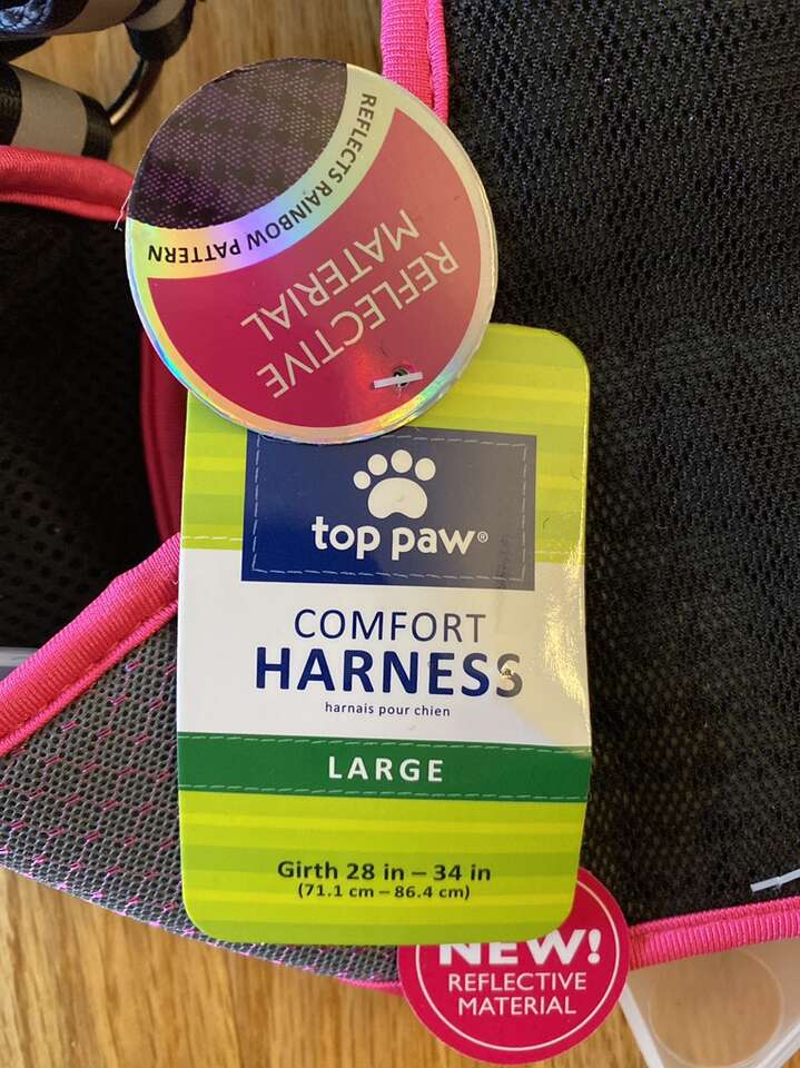 VenmoThis is a comfort harness. It is reflective!! It is size large, girth, 28 to 34 inches. Brand new, super sturdy! Great for night walks now that it is getting darker earlier! Brand new with original packaging and tags. Retails for $29.99 at Petsmart. Stored in smoke and pet free home. I have six total. Thanks for looking!!