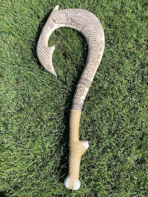 VenmoI bring you a 56-inch Maui’s hook made almost entirely out of reinforced foam and rope. The entire hook weighs only 3 pounds! This hook and nearly any other fan-like prop can be made to order in nearly any size. Who's ready for Halloween?
