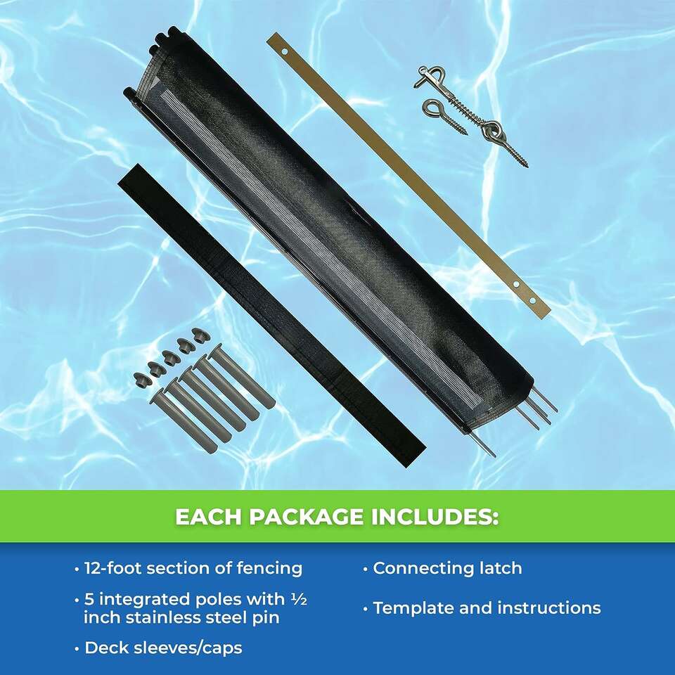 Pool Fence DIY by Life Saver Fencing Section Kit, 4 x 12-Feet, Black - Removable, mesh, pool safety fencing for use around swimming pools to help protect against accidental falls into the pool.