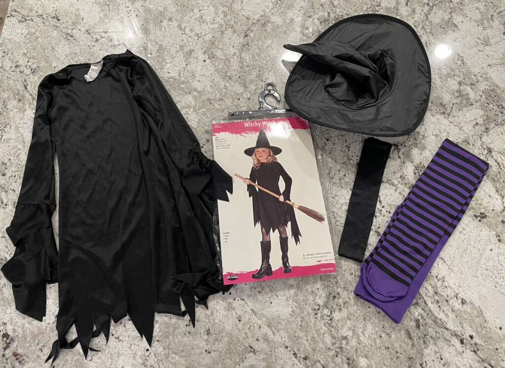 VenmoWitch Costume Little girl size small 4-6 Includes dress, belt, hat, & purple tights.