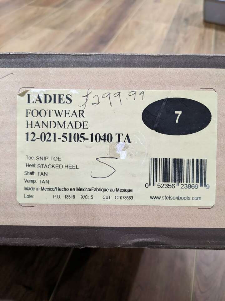 PayPalA pair of good lookin' boots, in mint condition, that have never been worn outdoors. Purchased for my wife but apparently Stetsons tend to run a little large and she had other boots that fit better. $300 new. $85 OBO. Please text or message through the KSL app.