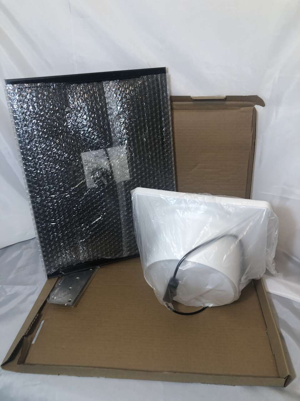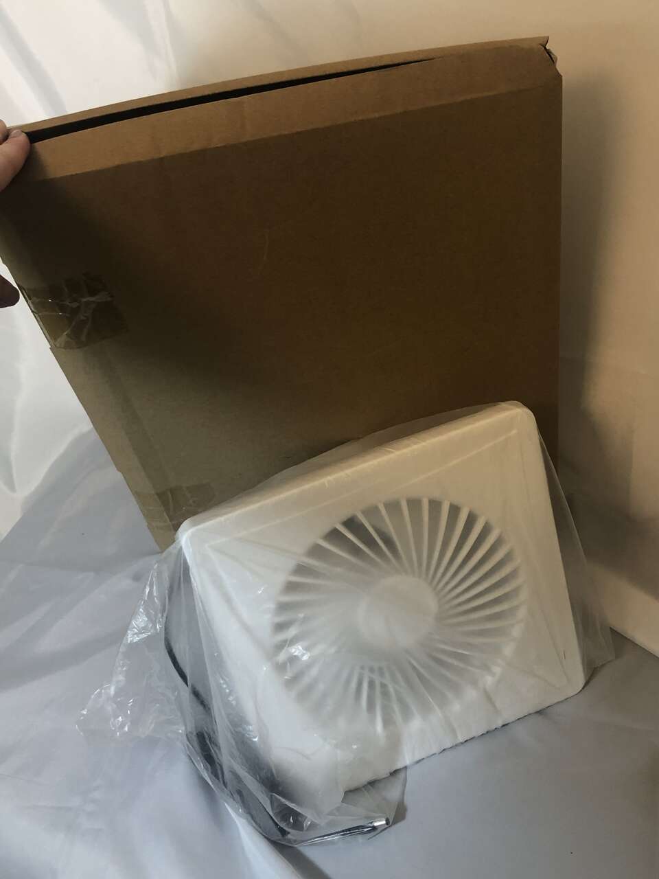 VenmoBrand New Solar Powered Outdoor Fan. Purchased, but never even installed to use and still in box. Blade diameter is 7 Outer square measures 9 7/8x 9 7/8. solar panel is 16.75x13