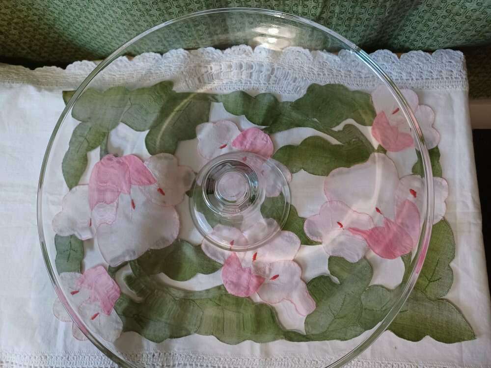 Beautiful matching glass set. Very heavy glass. Perfect for the holidays, Will match any decor.