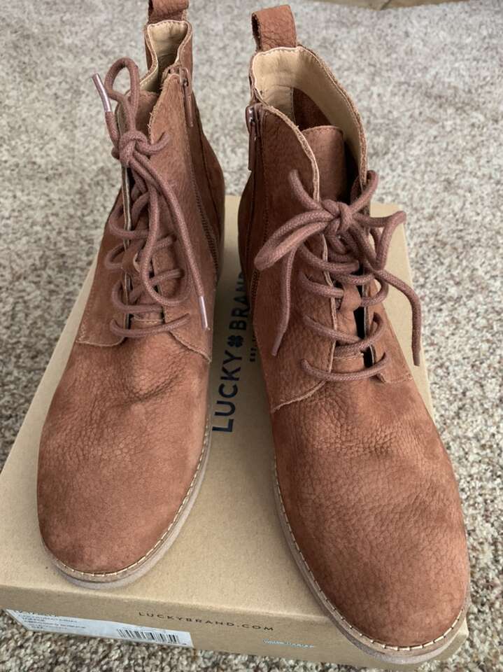 Lucky brand new wonens suede boots. New in box- never worn. Size 8