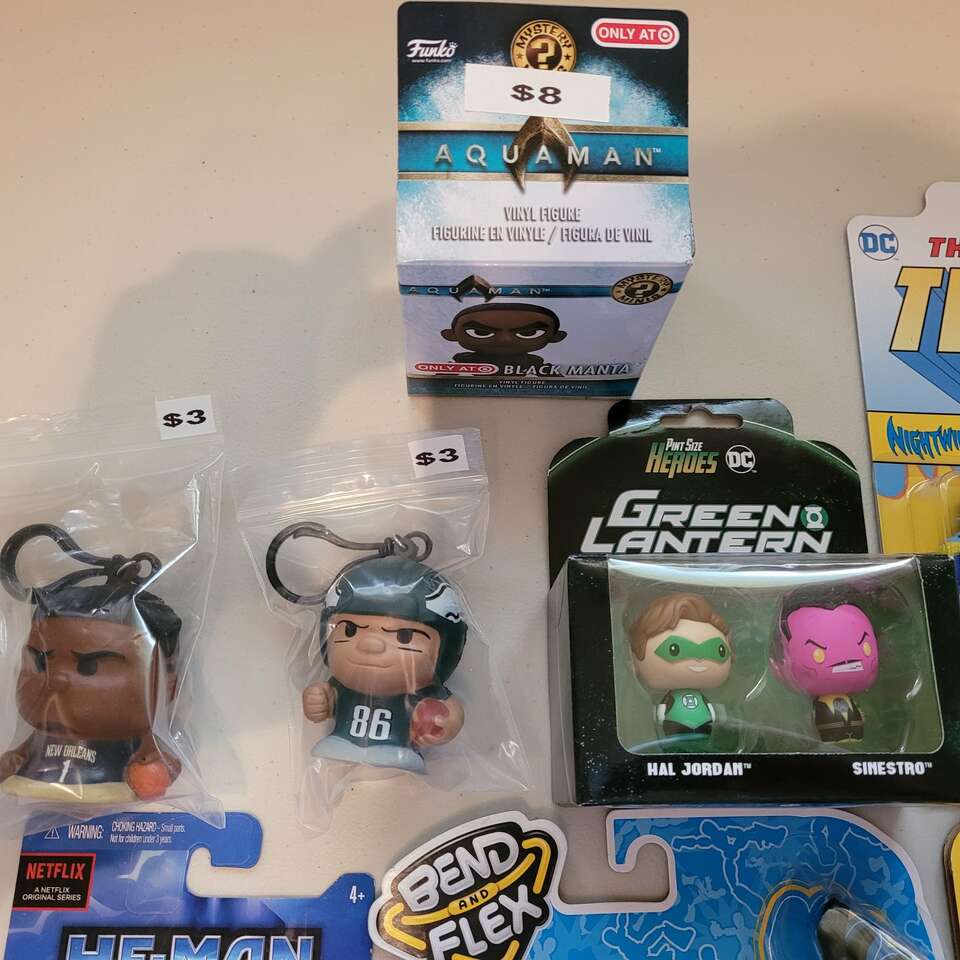 Zion Williamson- Pelicans-squishy keychain - $3 Zack Ertz-Eagles-squishy keychain - $3 DC pint size heroes-Green Lantern- $8 DC The New Teen Titans-Nightwing - $15 DC The New Teen Titans-Starfire - $13 He-Man- Skeletor - $5 Jurassic World Snap Squad - $3 Marvel Spider-Man bend and flex-Venom - $7 Imaginext-DC Super Friends - $20 Cash or Venmo. TEXT 559-707-5899. Thanks for looking!