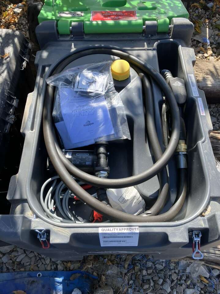New diesel fuel storage and dispensing tank. TM200. I believe it holds 53 gallons. Bought it and have stored it but never used.