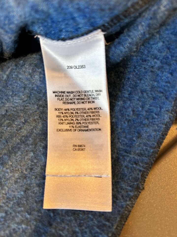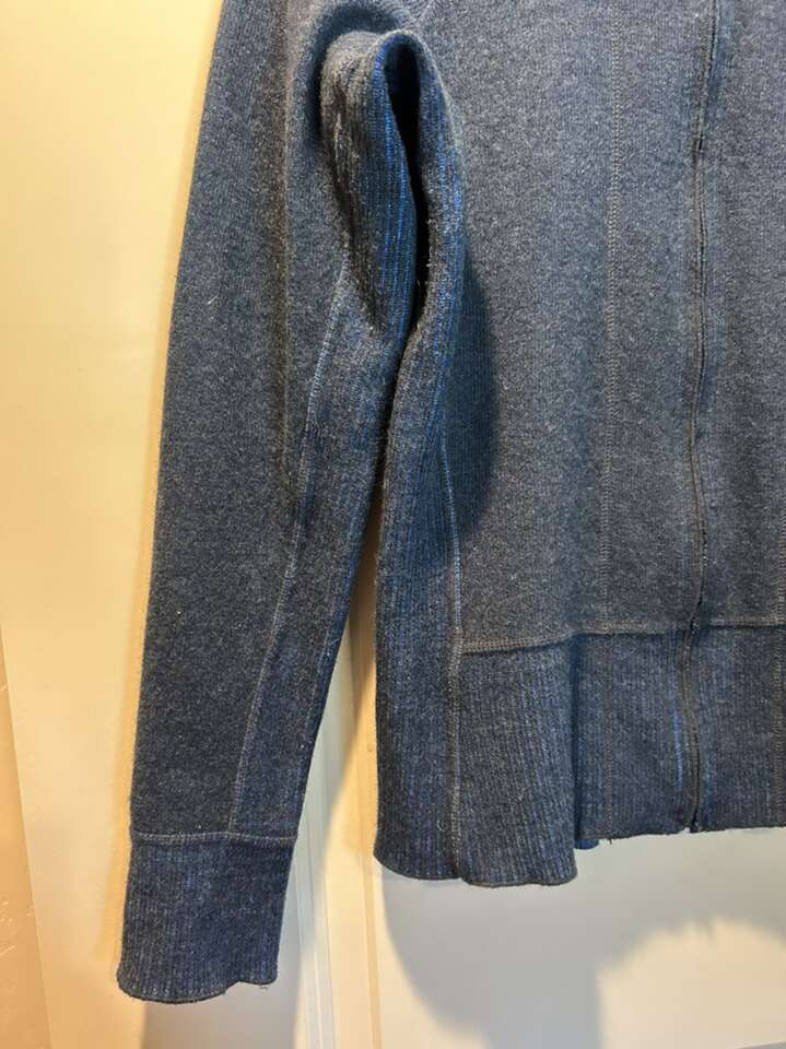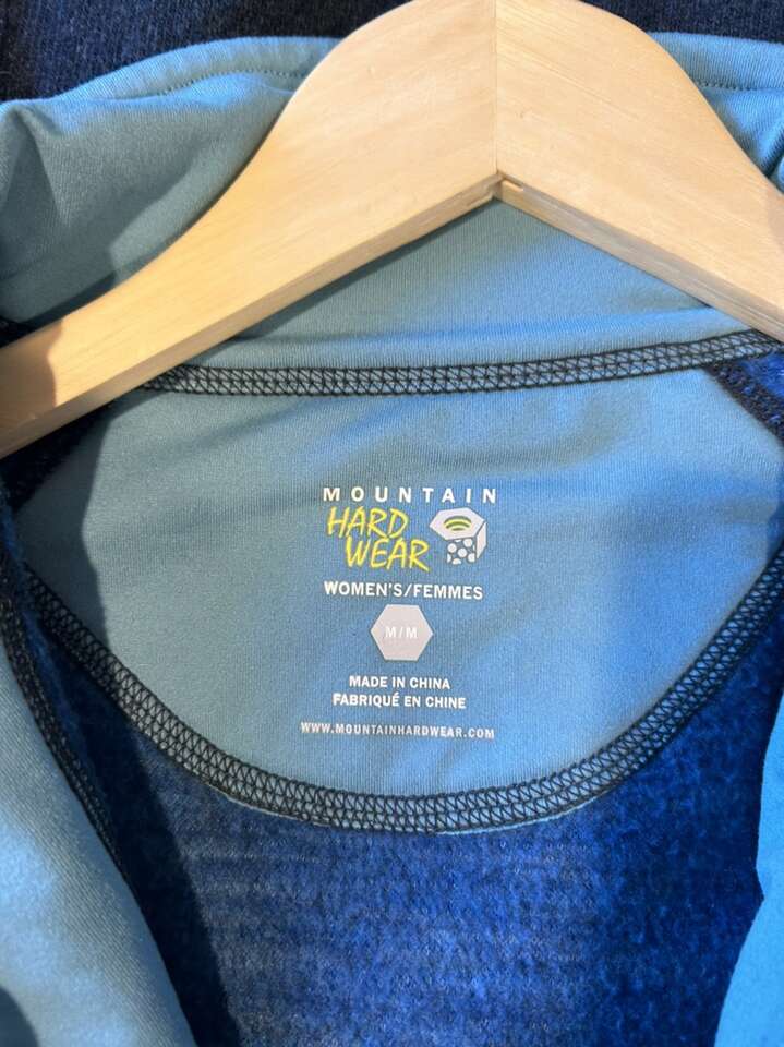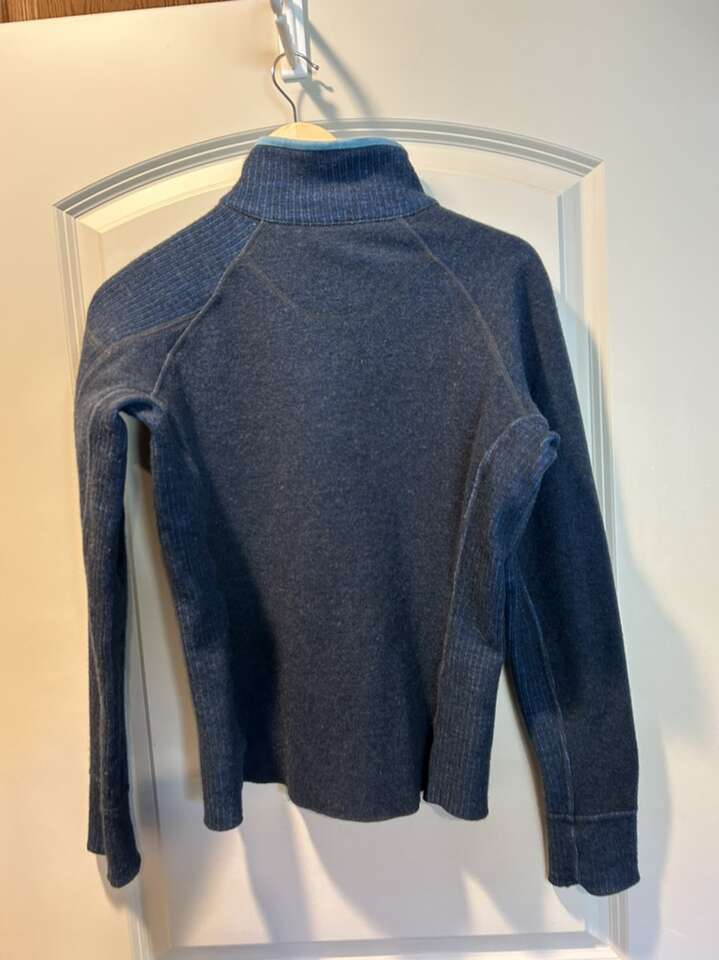 Women’s size medium mountain hardware, wool blend jacket in excellent condition. Dark blue with medium blue and turquoise. Soft knit lining around the collar. Shoulder patch style zipper pocket adds to wearability. Figure flattering fit. No holes, stains or defects. Clean non-smoking home. This is a perfect layering piece or standalone, wardrobe, staple. Seasonless can be worn almost all year. Cash or Venmo. Porch pick up from north Utah county home.