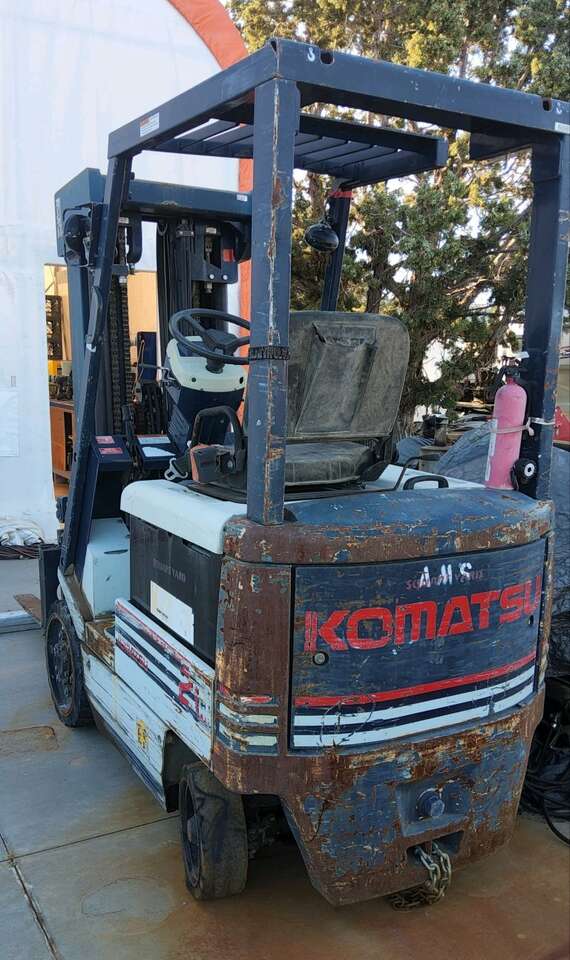 For sale is a Komatsu electric forklift. This is a 4000lb unit with the very high reach multi stage boom. Note Unit is not working at present. Battery appears ok but is not switching into drive mode. Unit operating time is quite low hrs. Don't have time to figure it out so letting it go cheap. Call Larry with any questions 702 357 0865