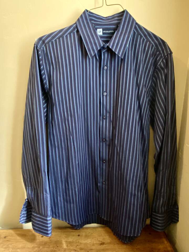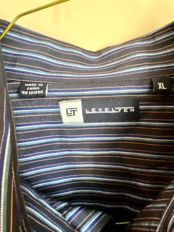 NEW - Mens LevelTen Mens Long Sleeve Dress Shirt - Blue and Black Stripe - SZ XL - C PICS. Great Shirt, wear it for Dress to Sporty. Bought for hubby but wasn't really his style. I love it lol. Selling a bunch of Mens shirts, check out my other listings.