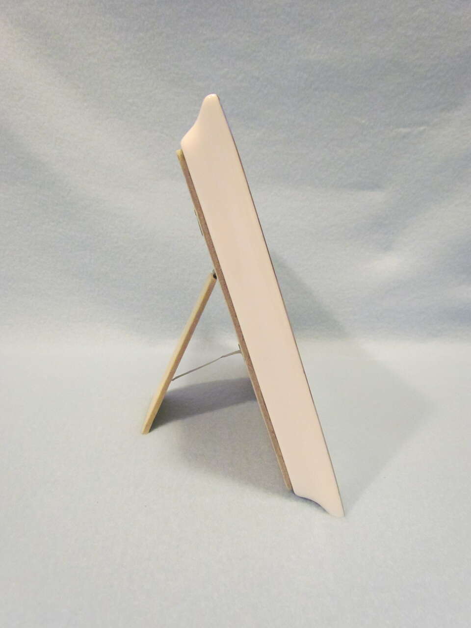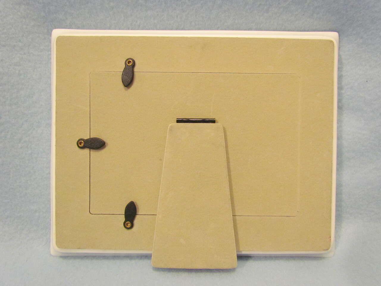 This lovely frame will beautifully highlight any picture placed inside it – especially a family with a new baby picture. Frame is white with the word “FAMILY” above the picture opening & the phrase “A New Family of Love” below the picture opening with a picture of a baby carriage below the phrase and the outer edge of the frame is lined in a silver color. Measures approximately 9 ¼” x 7 ¼ with a 4x6 picture opening. Would make a lovely gift. Good gently used condition.
