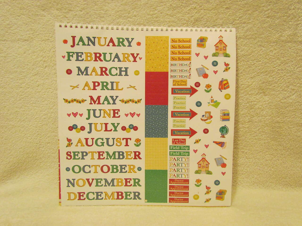 This delightful School Days calendar is perfect for keeping a scrapbook record of your child’s school year on decorative pages. “Scrapbook your special memories for each cherished month!” Included are: