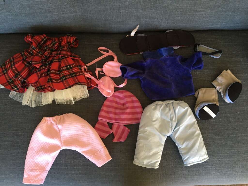 Pottery Barn Kids 17” Cloth Doll and Clothes lot. Includes doll with black yarn hair, soft body with poseable arms and legs. Also includes all clothes and accessories shown in photos (all Pottery Barn brand). All in very good condition. Text only. Cash or Venmo.