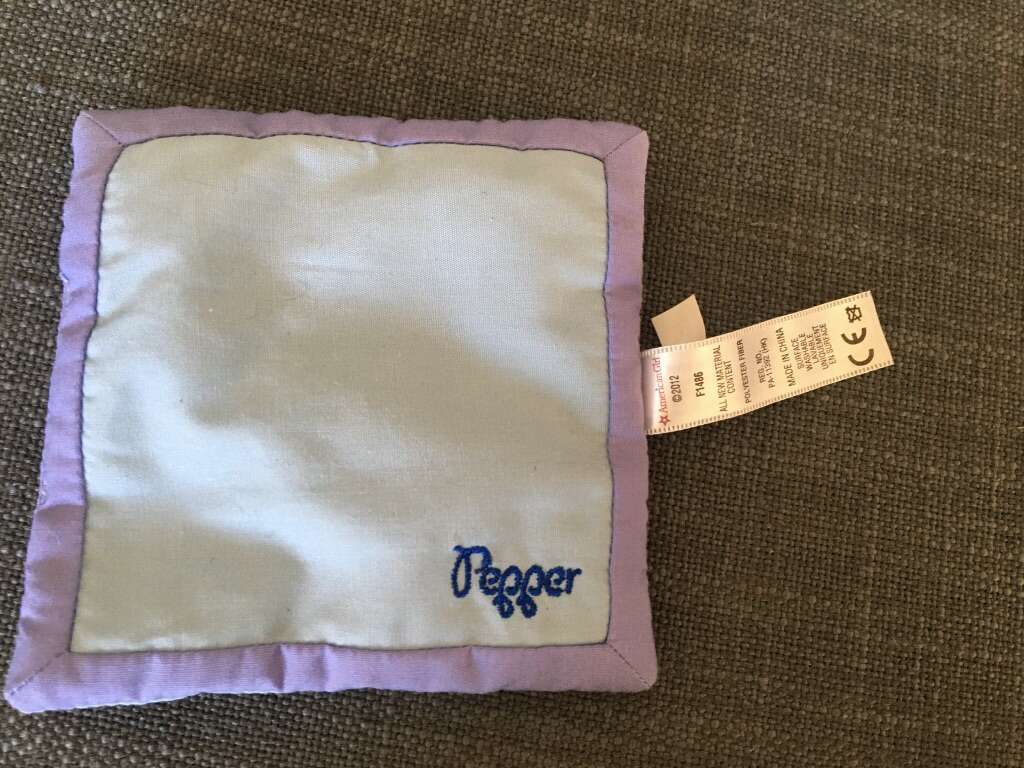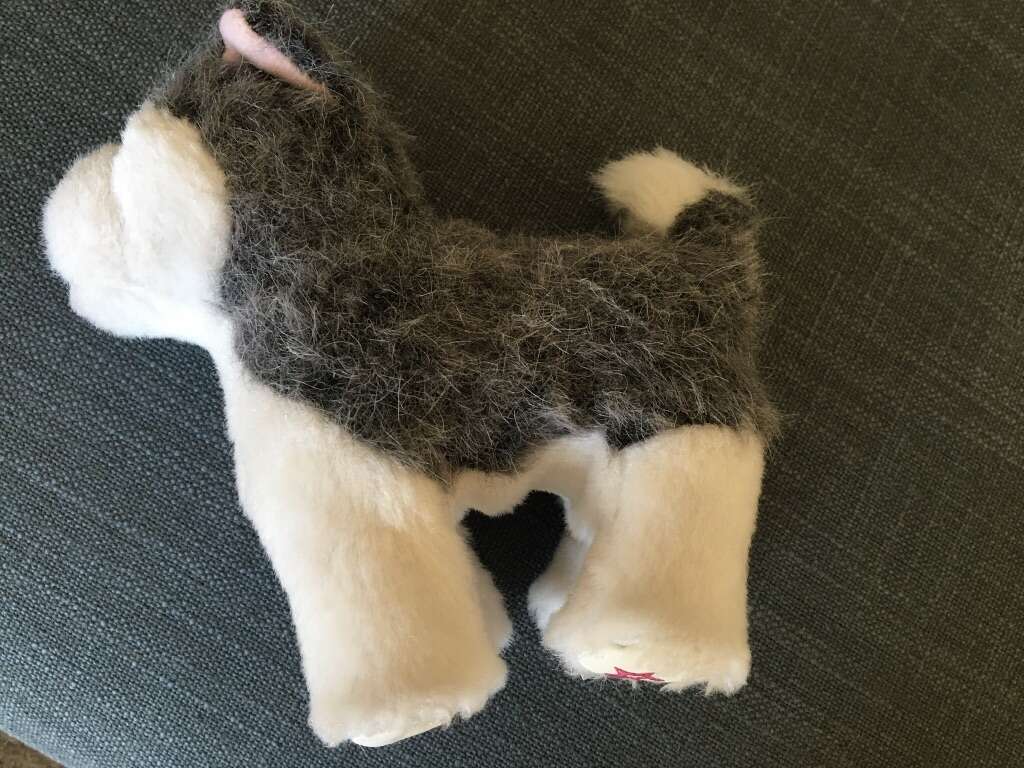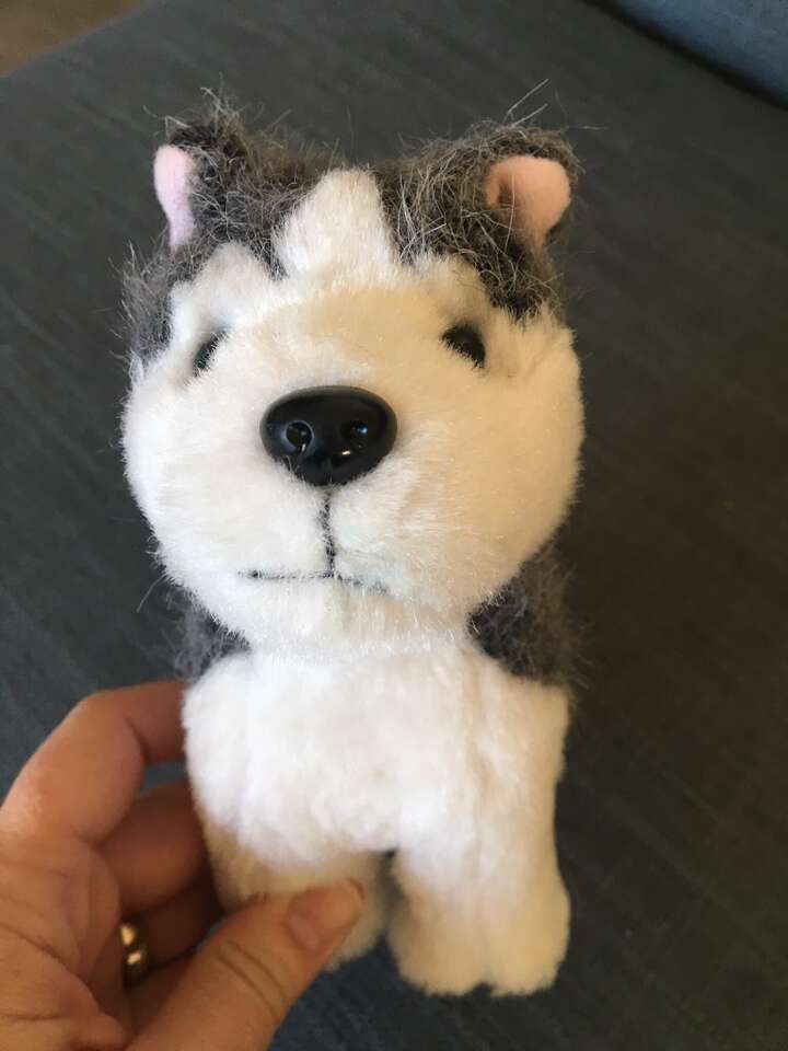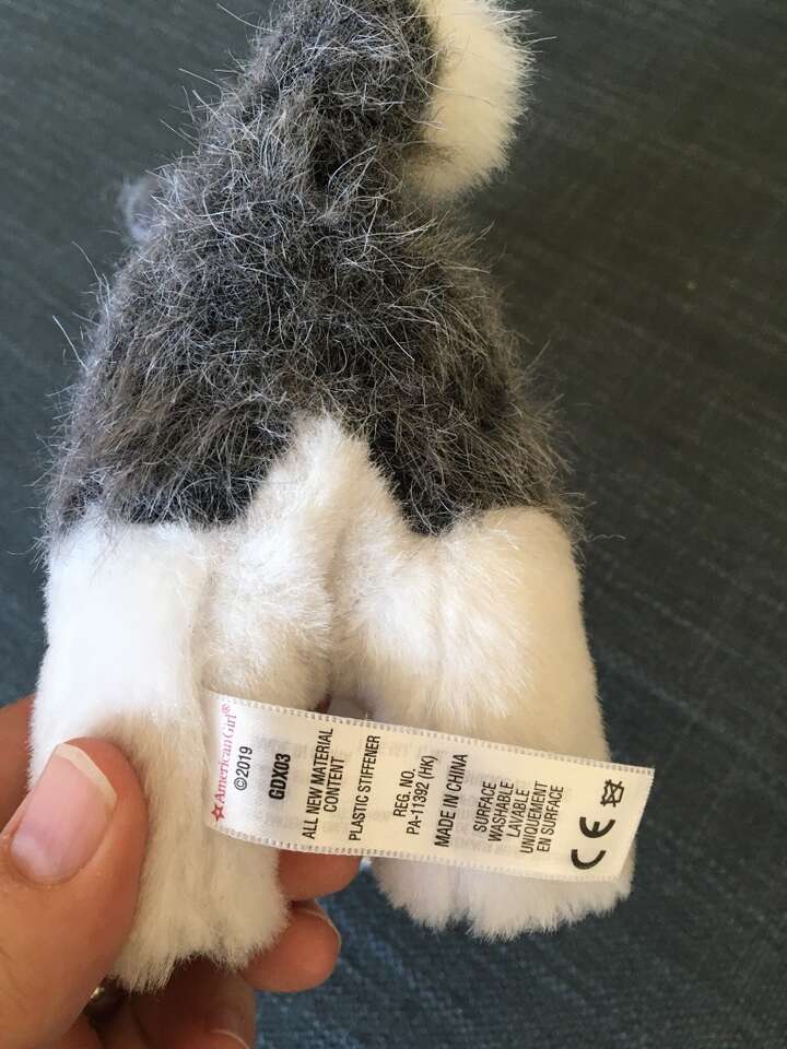 American Girl gray and white pet Husky dog Pepper (2019, poseable legs) with small monogrammed pad (2019). Very good condition. Text only. Cash or Venmo.