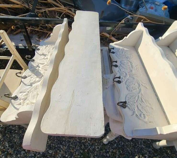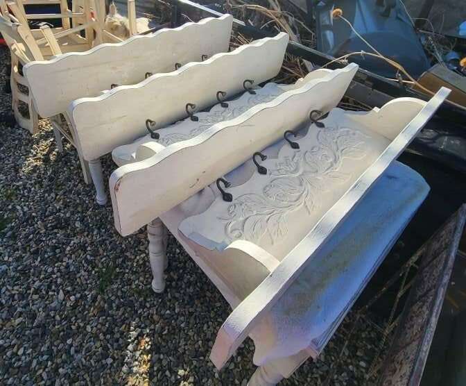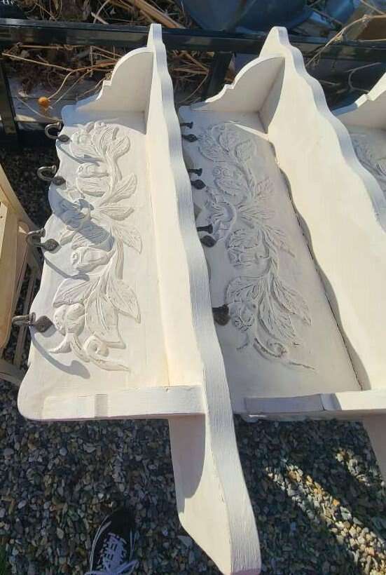 Coat/Clothing Shelves - 4 4 metal hooks each, solid wood. Cottage Core, Shabby Chic, Country Farmhouse. . 34 x 9 x 7" each