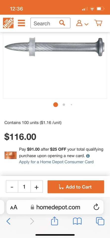 Hilti 100 count X-C 47 P8 concrete nails. I have 3 boxes. $20 per box They cost $116 per box at Home Depot