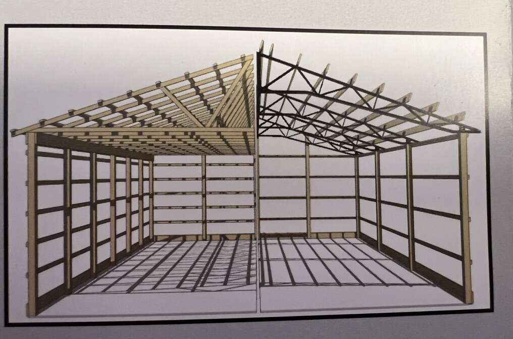 These are perfect for building pole barns and using less lumber and ease of use. Depending on the application they can be spaced out every 10' reducing the need for a lot of trusses. This design allows the center height to be higher than a standard truss. They come in standard widths typically 20', 24', 30', 40', 50' (those are the most common), but additional sizes available. The pitch is standard at 4/12. The pricing starts at $275 and goes up from there. Please call or text 801-436-7890. As you can see from the last image the interior height is higher than a traditional truss. These are designed to improve interior dimensions and reduce lumber package costs.