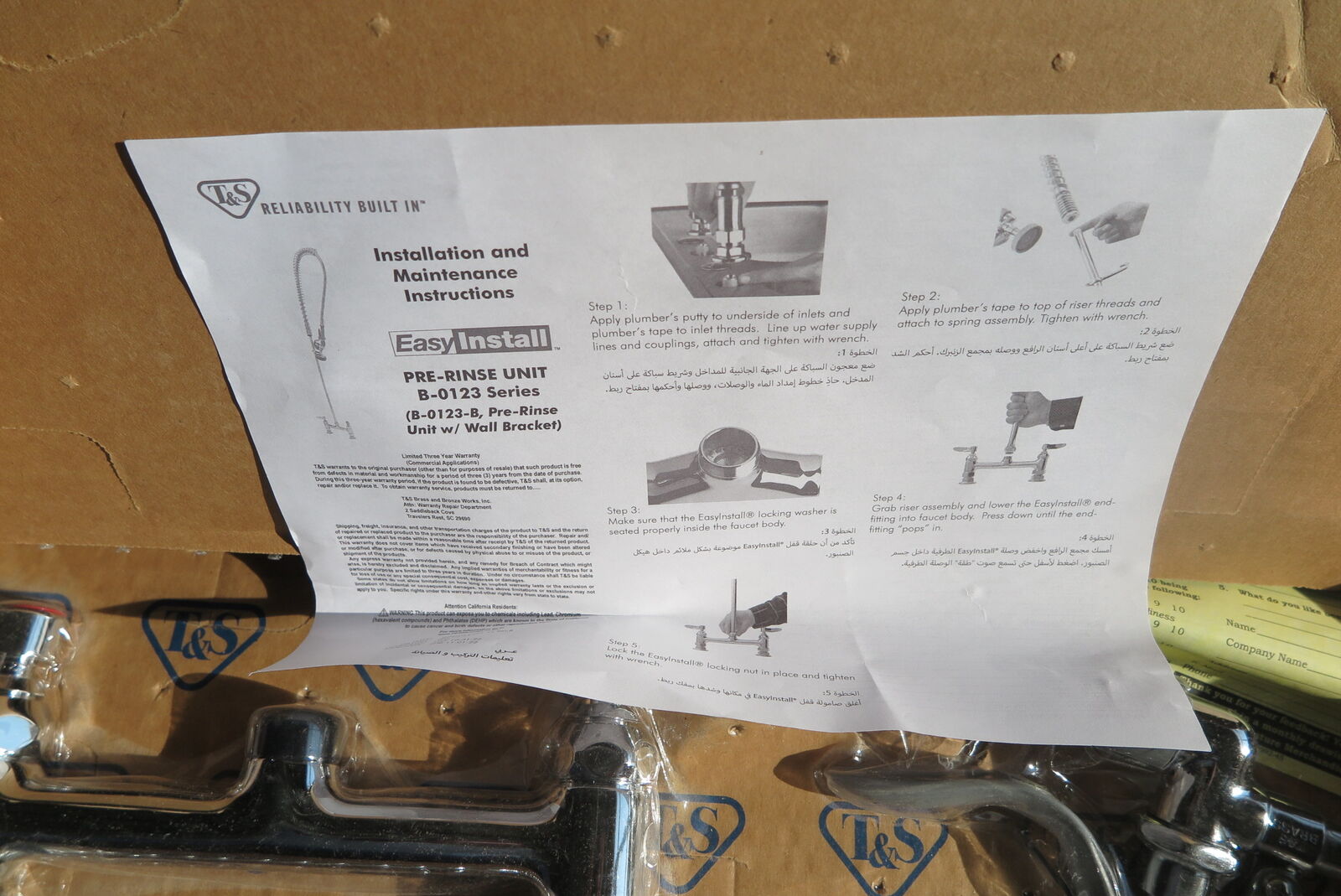 t&s commercial pre rinse faucet B-0123 B series