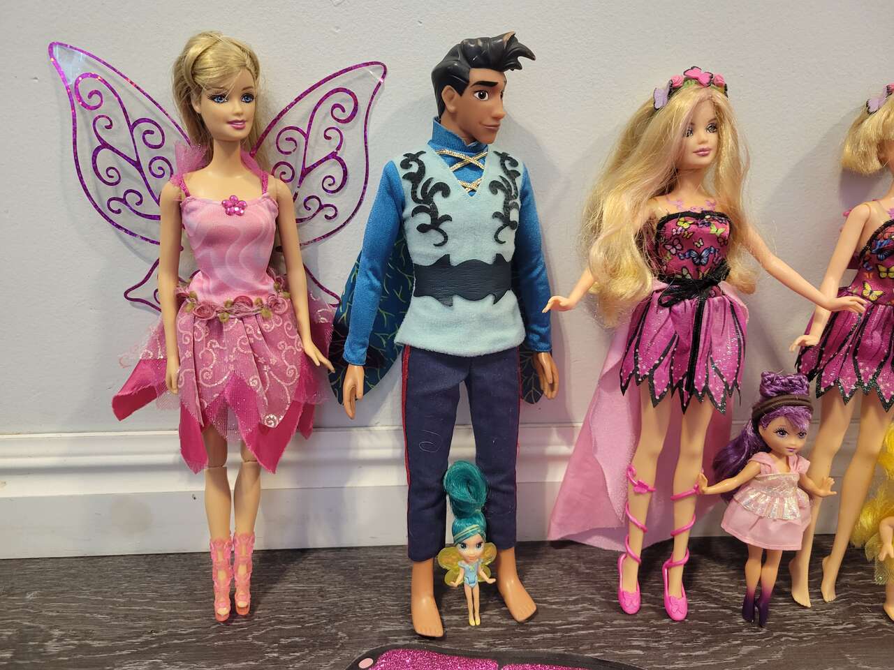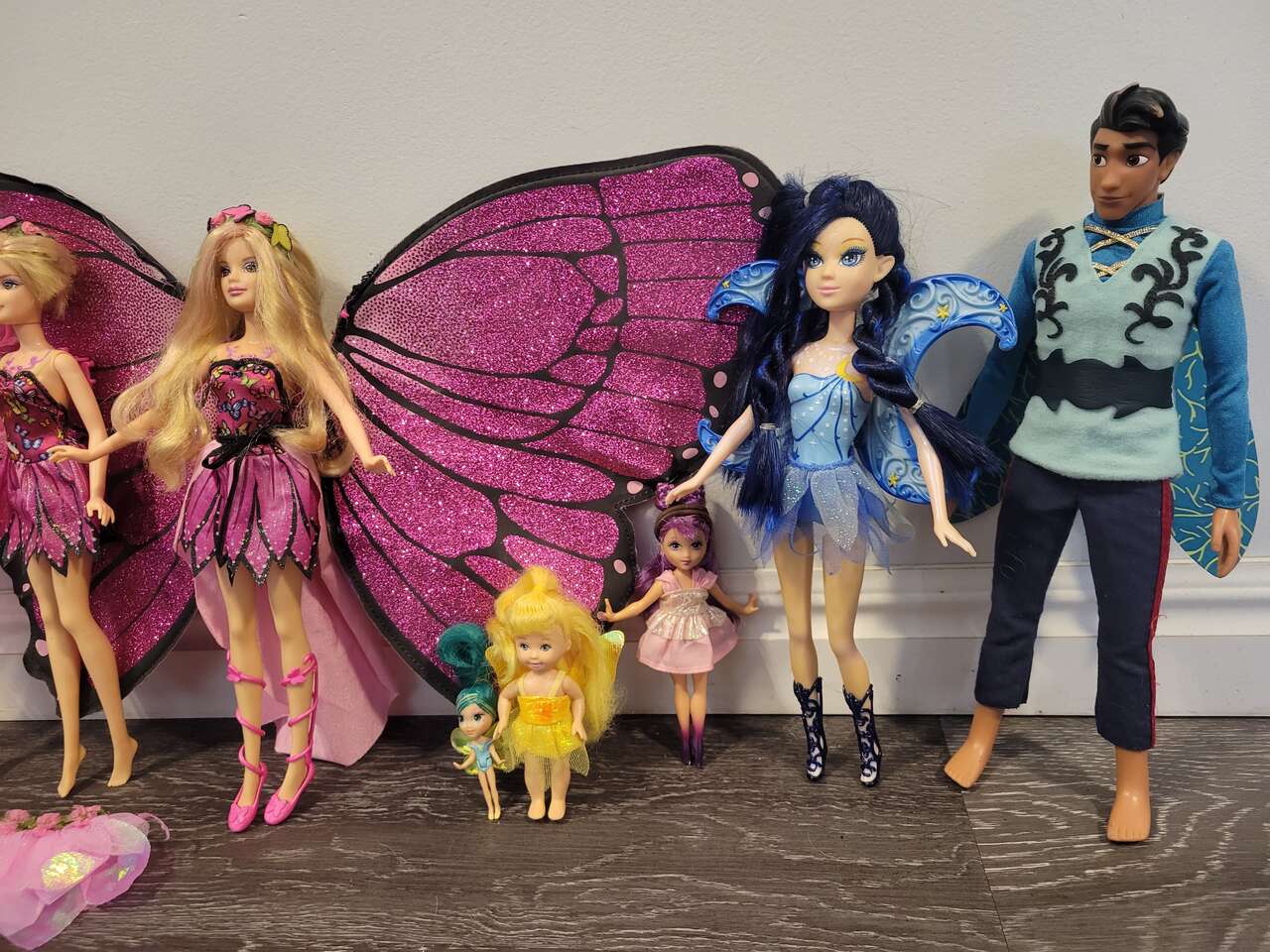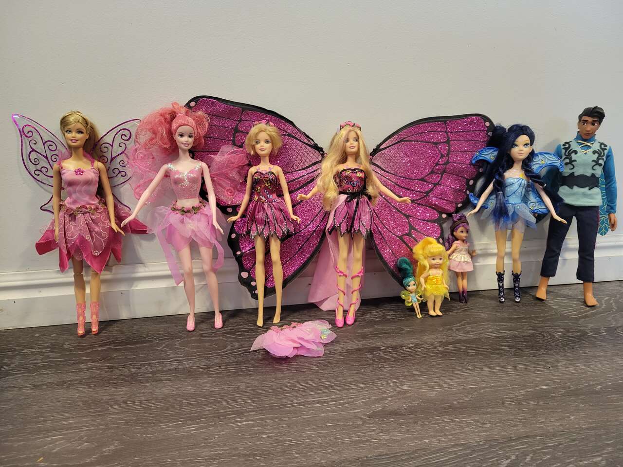 Barbie 2 magic wings mariposa butterfly doll's, and a couple fairytopia pink fairy doll's... magic of the rainbow lumina and others included, with a skirt