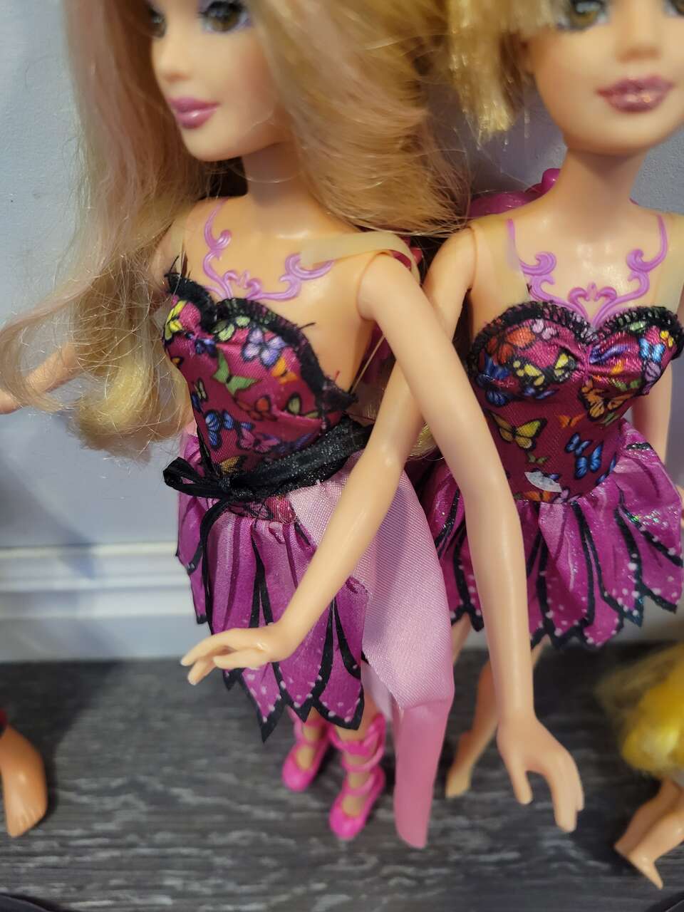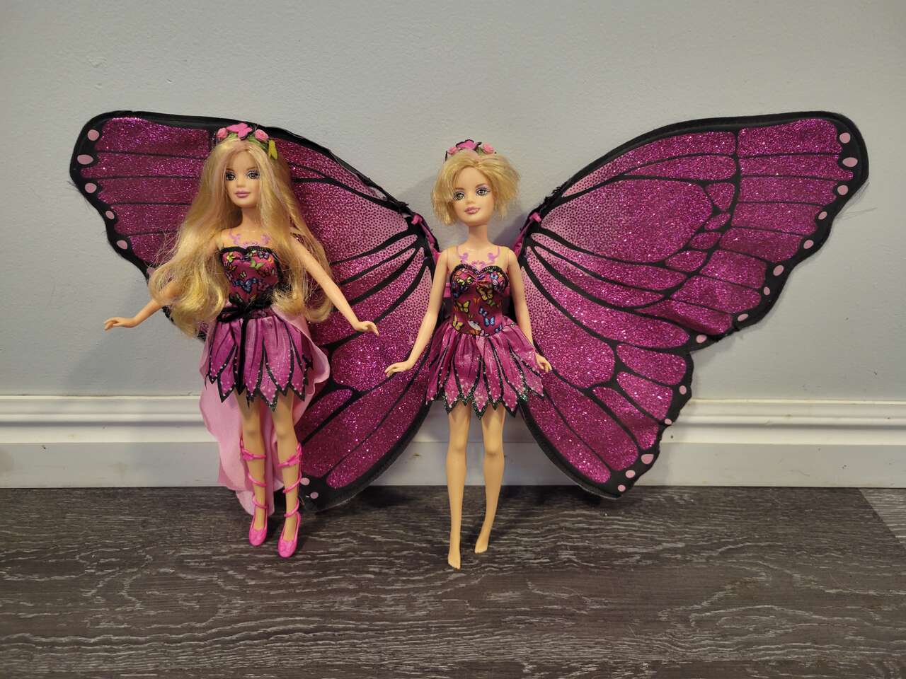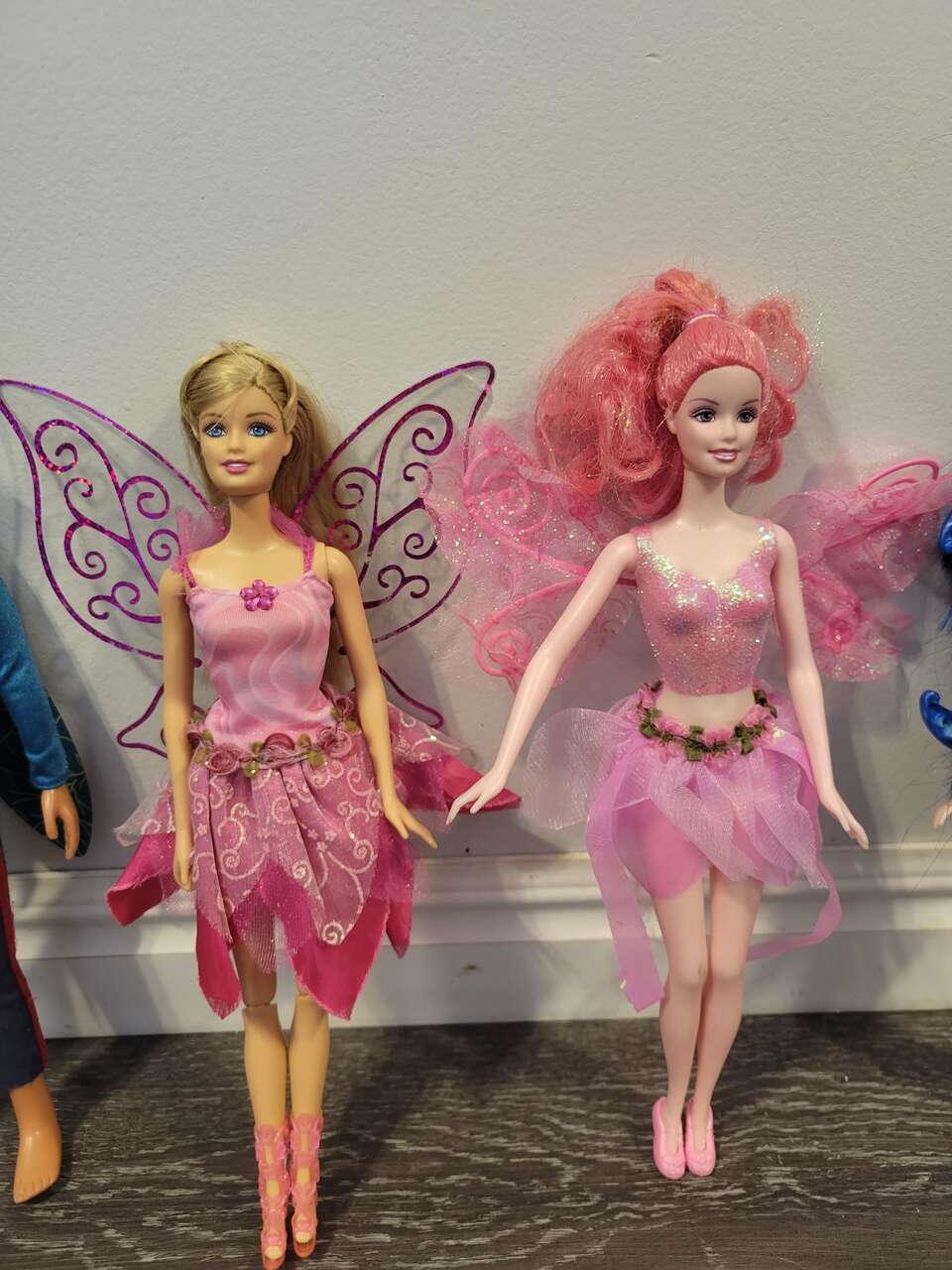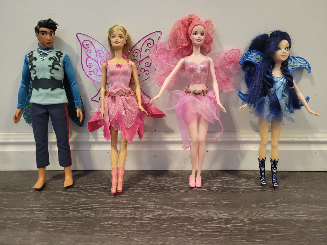 Barbie 2 magic wings mariposa butterfly doll's, and a couple fairytopia pink fairy doll's... magic of the rainbow lumina and others included, with a skirt