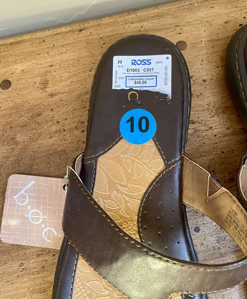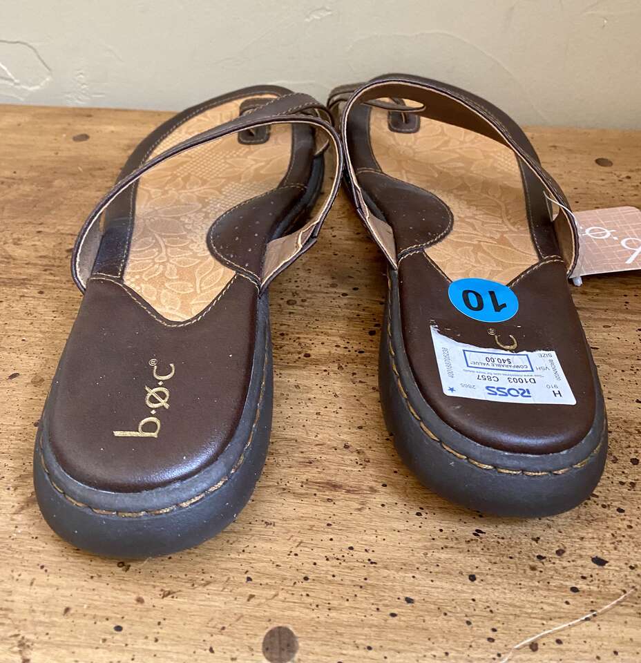NEW - Womens SZ 10 B.O.C. BROWN Leather Sandals - I have a pair in Black-Super Comfy- C PICS. This style of sandals Are very supportive with the toe slide. Great for your tropical vacation coming up. Retails for $40.