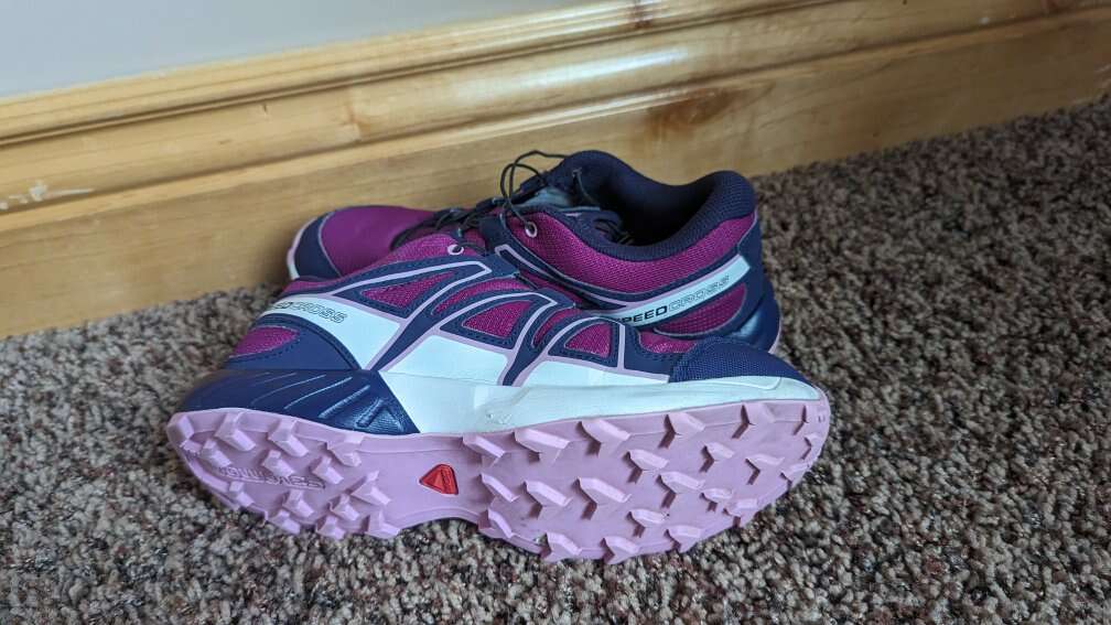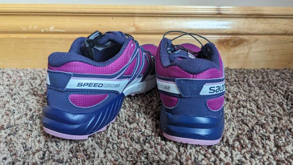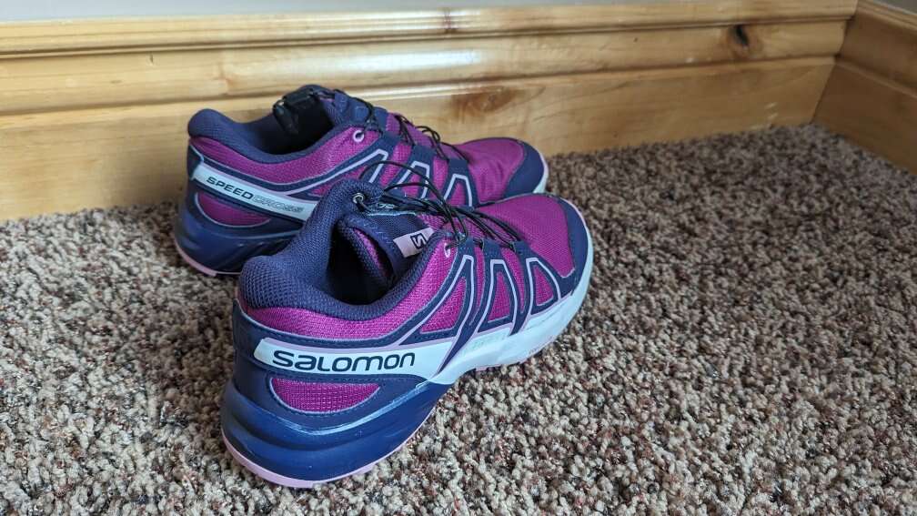 Very nice pair of girls Salomon SpeedCross shoes size 5 youth. Very good condition.