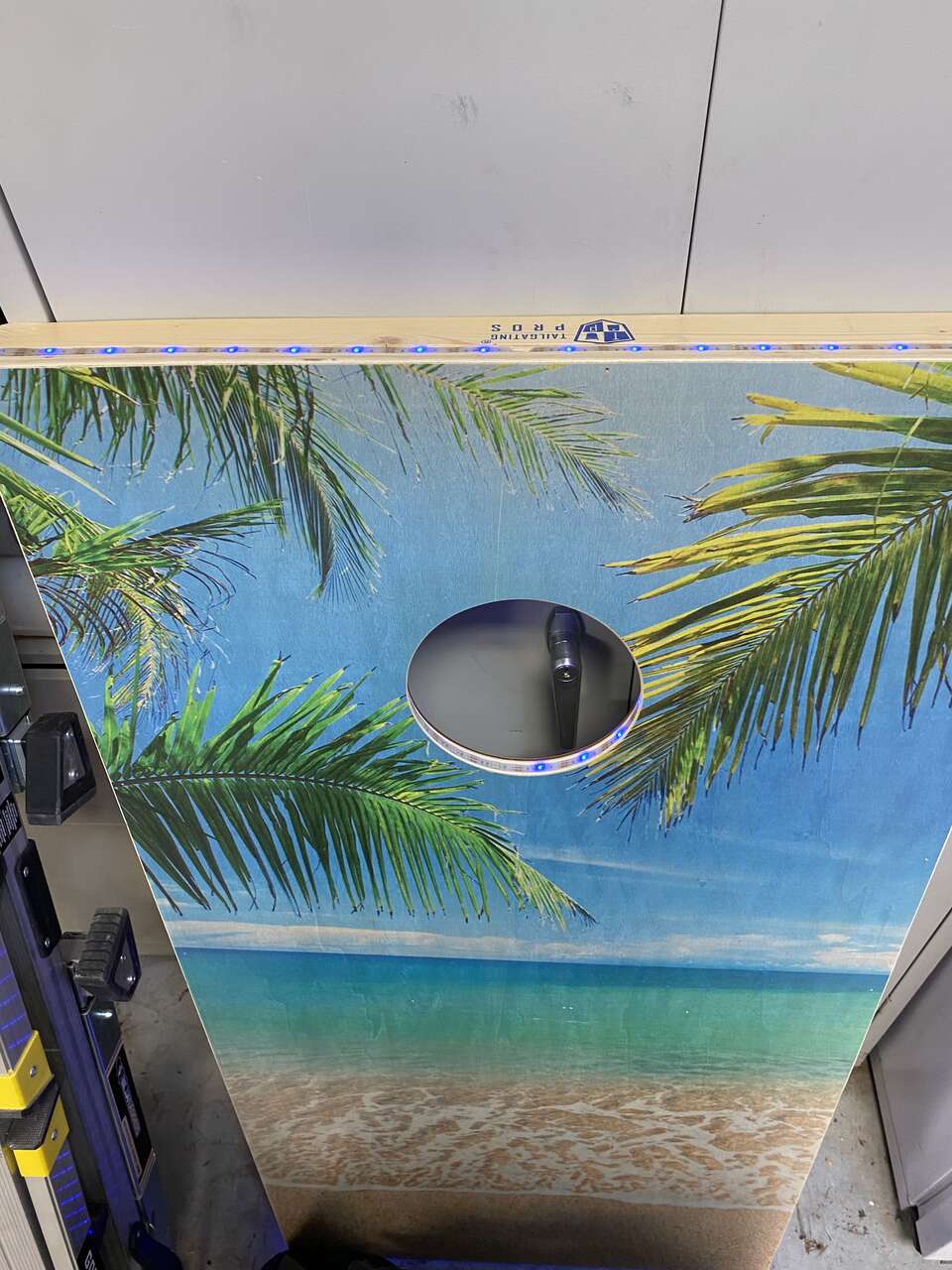 This single Cornhole board has lights around perimeter and inside the ring(a few of the led light dots around inside ring do not work but most do). It is not a set of boards But maybe can use it for practice or replace another, etc. Never been used
