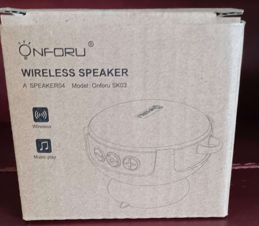 ONFORU Bluetooth Shower Speaker New in box. Wireless speaker Model: Onforu SK03 Sticks to shower wall with included suction cup. FCFS Cash price listed.