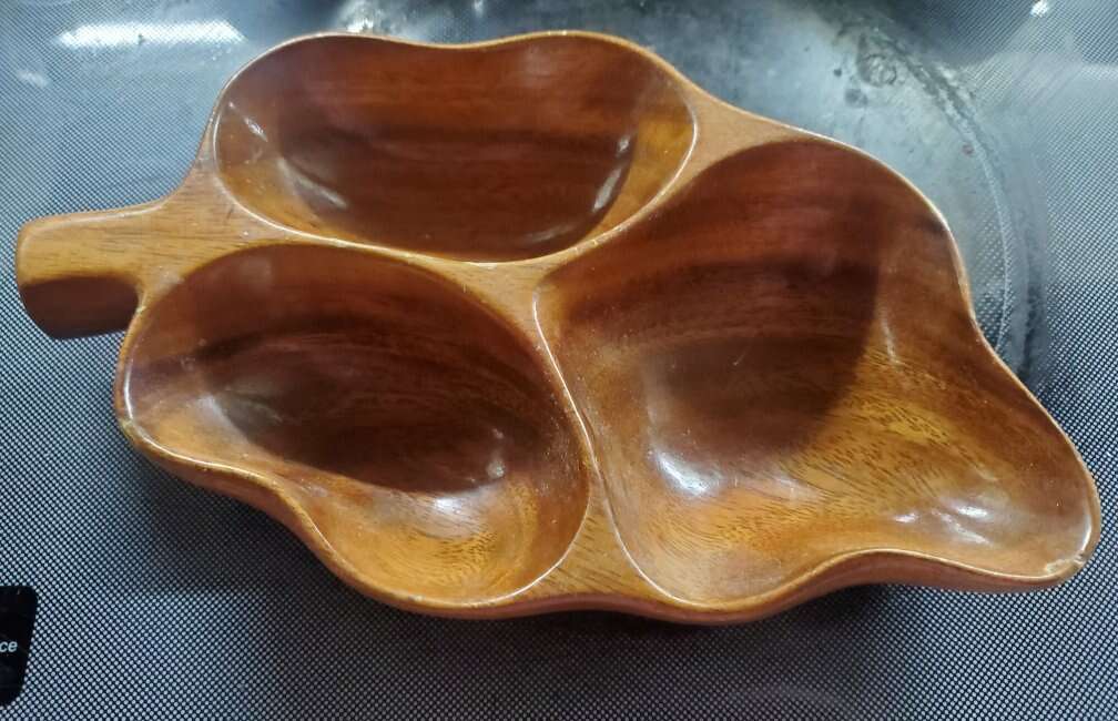 Vintage Waikiki Woods of Hawaii Monkey Pod Leaf Pattern Condiment Serving Dish.